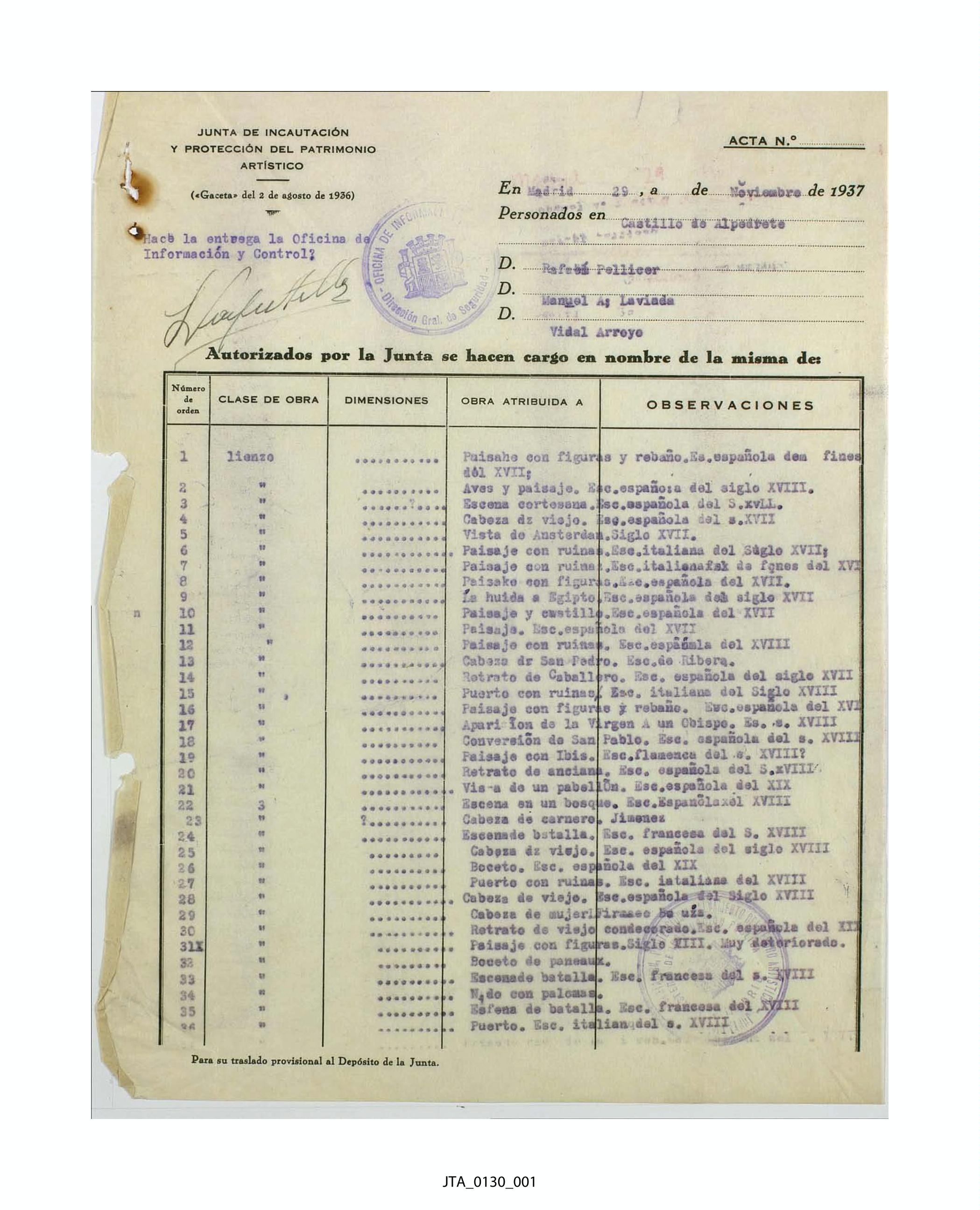 Acta de incautación del Castillo de Alpedrete