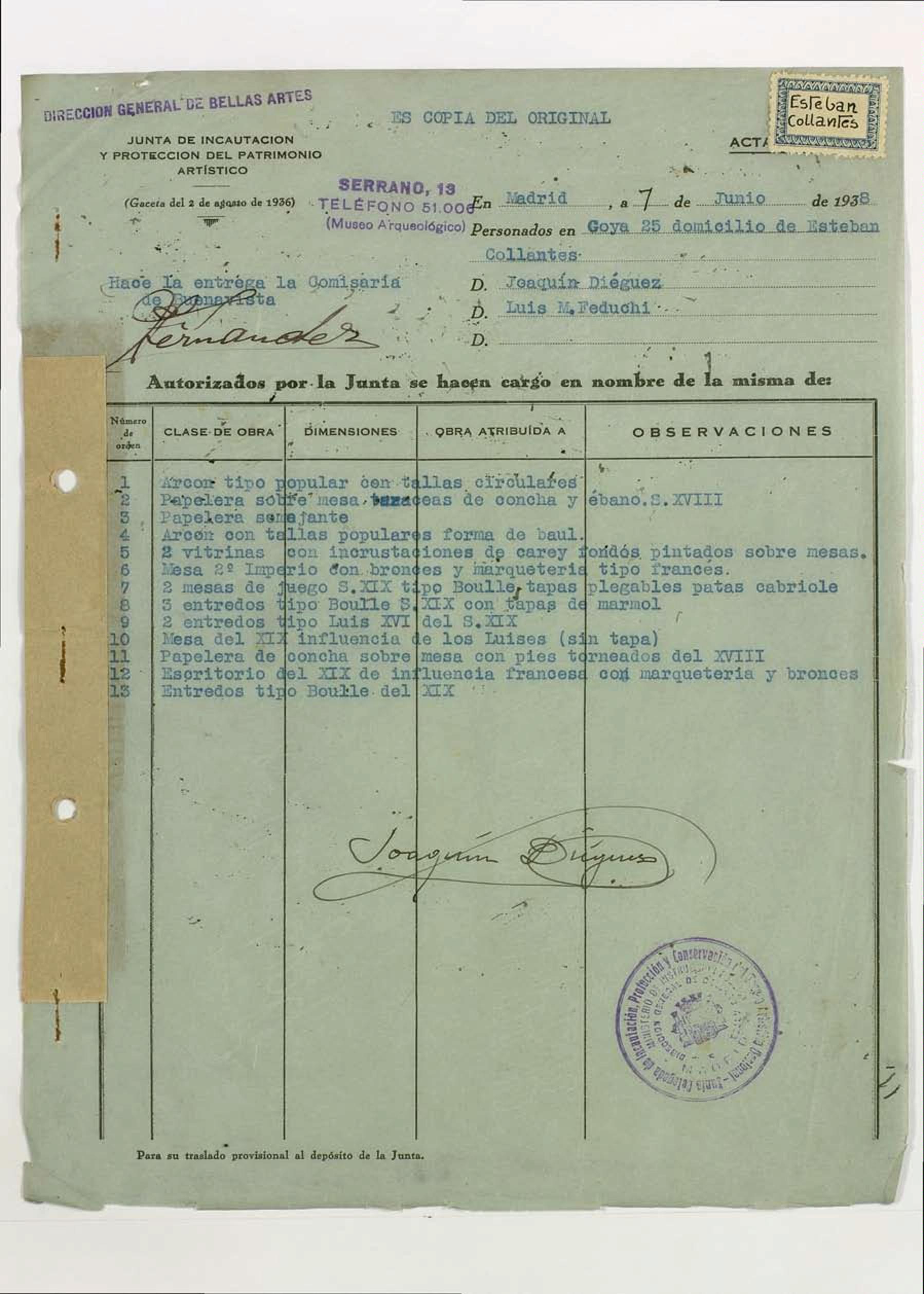 Actas de incautación de Collantes Esteban