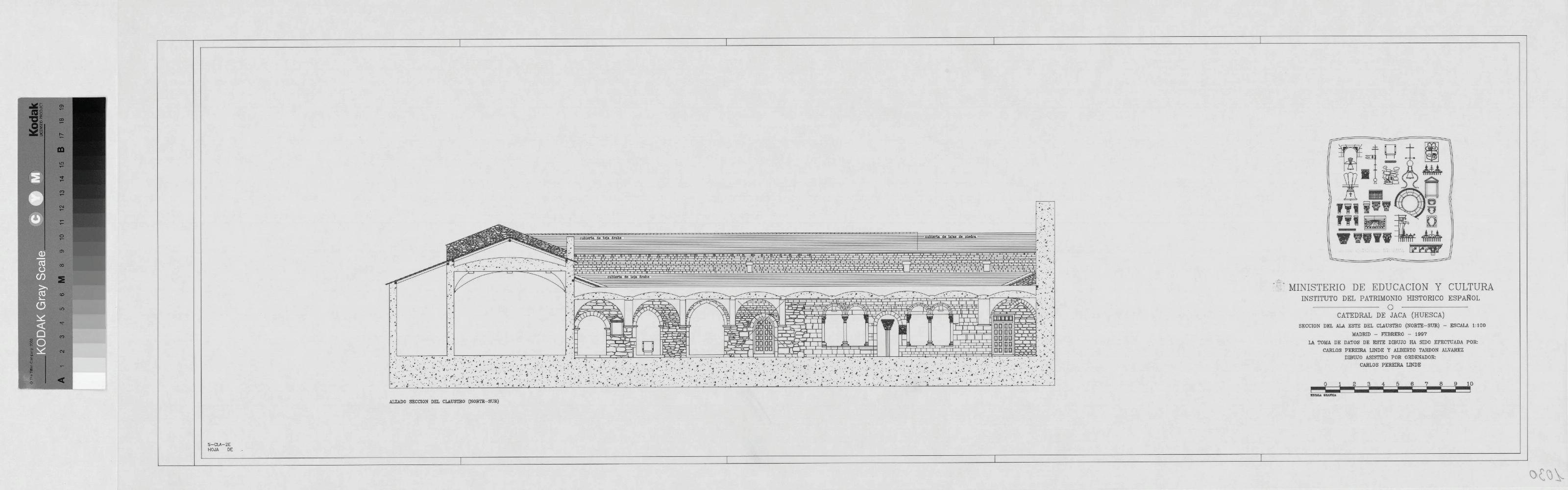 CATEDRAL DE JACA: SECCION DEL ALA ESTE DEL CLAUSTRO (NORTE-SUR)