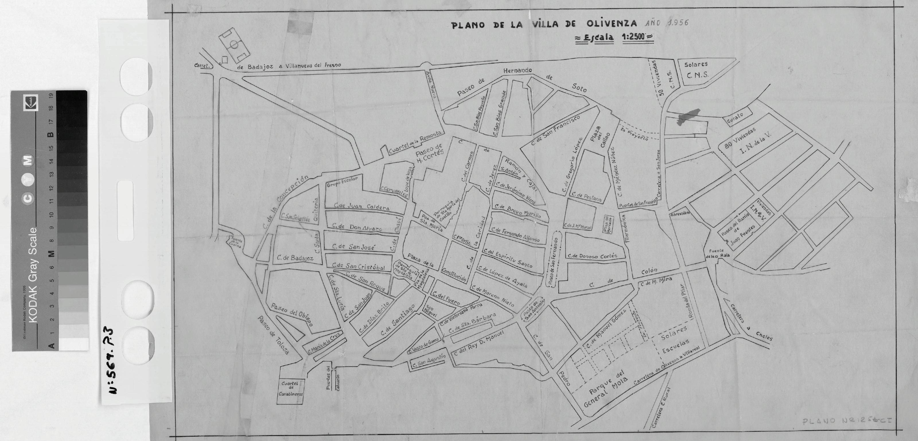 CONJUNTO HISTORICO ARTISTICO DE OLIVENZA (Badajoz): PLANO DE LA VILLA DE OLIVENZA Con nomenclatura de calles así como usos al que se destinan algunos solares. Sin firmar