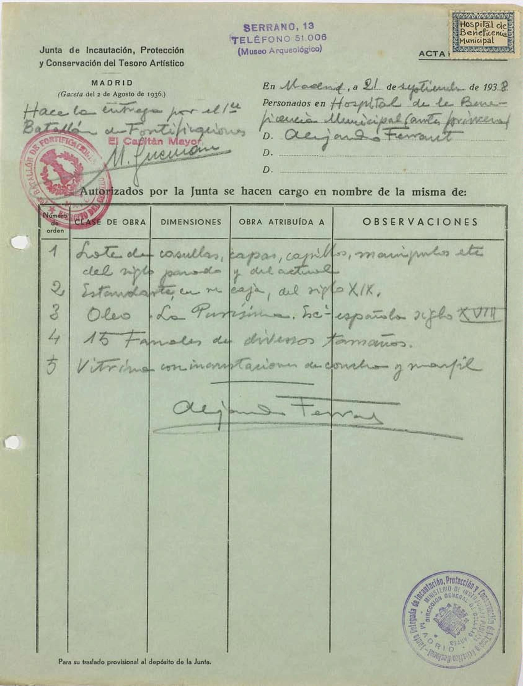Acta de incautación del Hospital de la Beneficencia Municipal