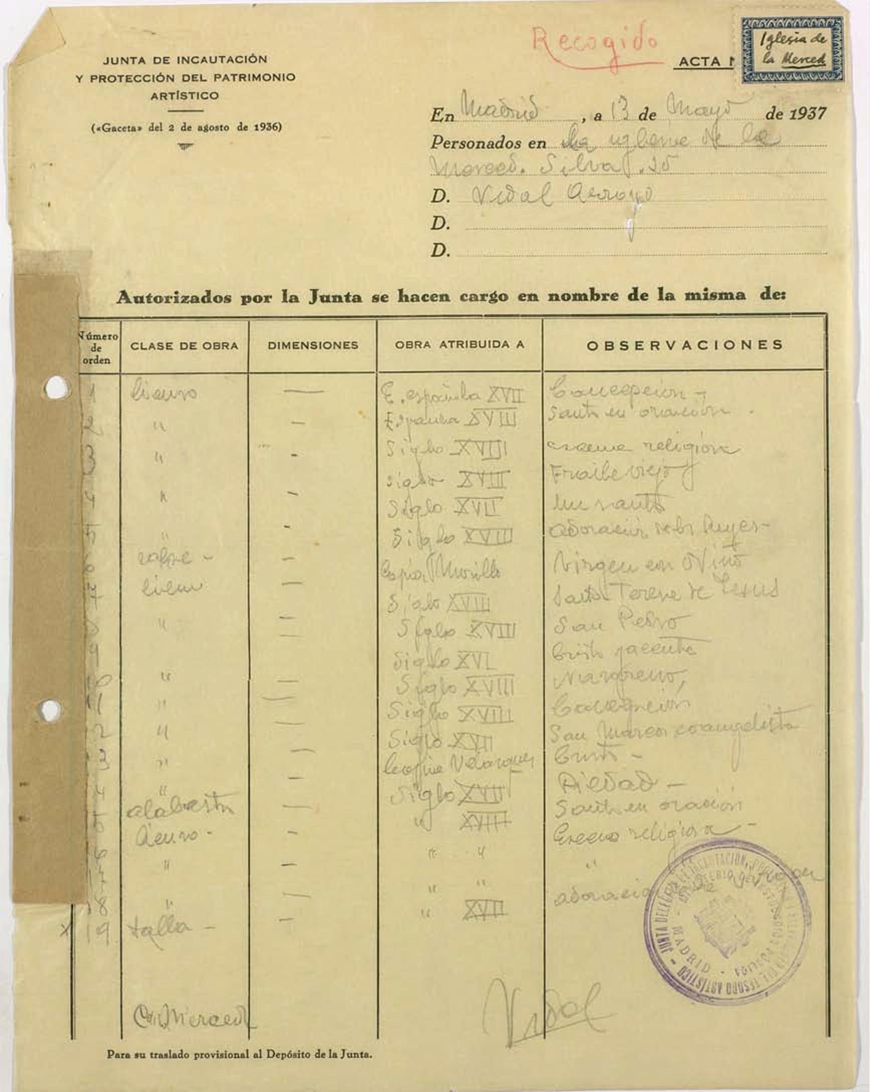 Acta de incautación de la Iglesia de la Merced