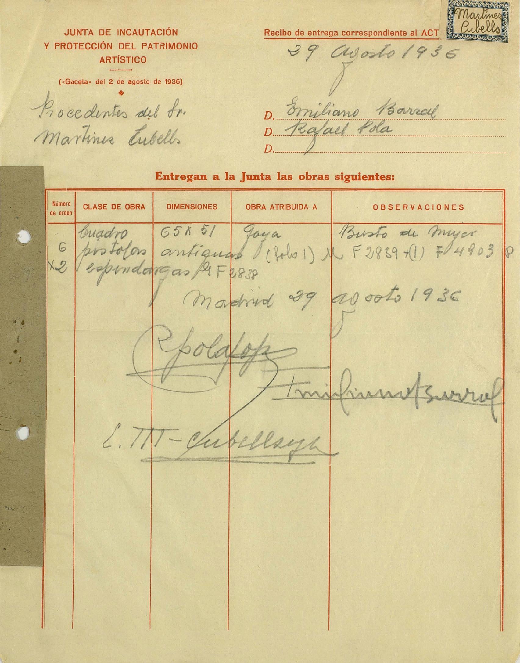 Acta de incautación de Martínez Cubells