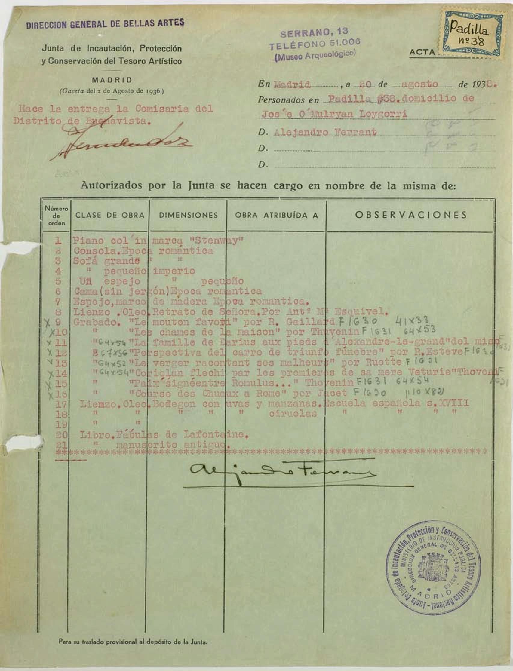 Acta de incautación de Padilla, 38 (domicilio de José O'Mulryan Loygorri)