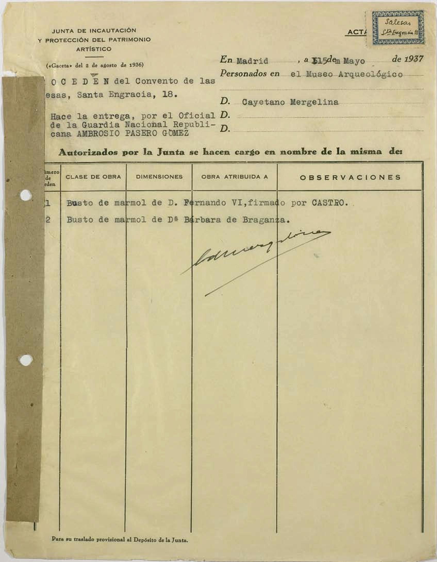 Acta de incautación del Convento de las Salesas (Santa Engracia, 18)