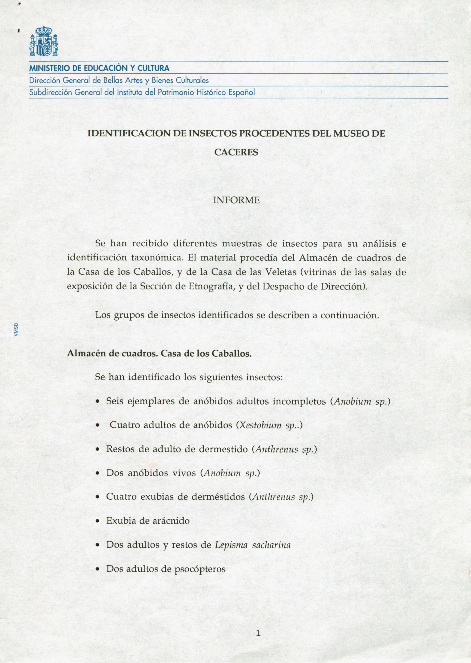 Informe de asesoramiento por ataque de insectos xilófagos en el Museo de Cáceres