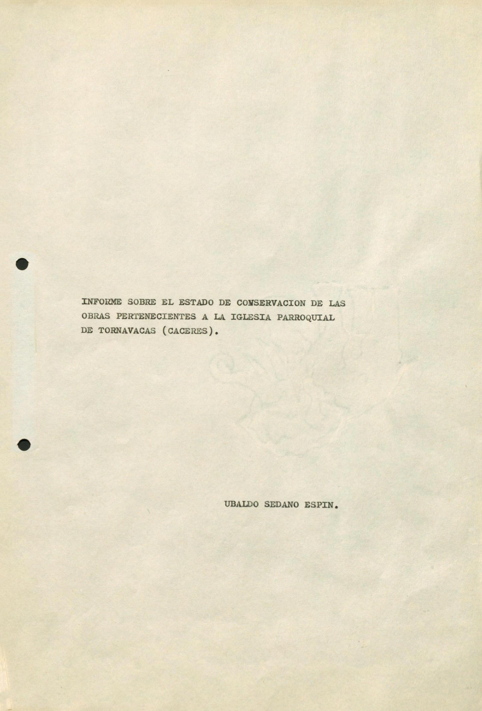 Informe sobre el estado de las obras pertenecientes a la Iglesia parroquial de Tornavacas (Cáceres)