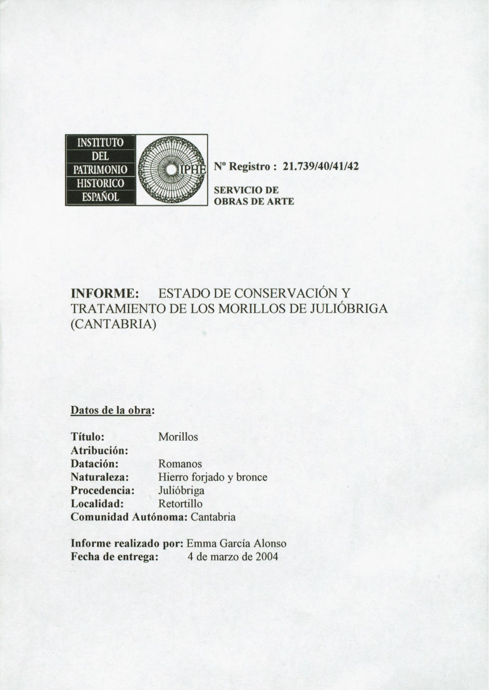 Restauración de cuatro morillos de hierro de la excavación de Julióbriga (Retortillo), procedentes del Museo Regional de Prehistoria y Arqueología de Santander (Cantabria)