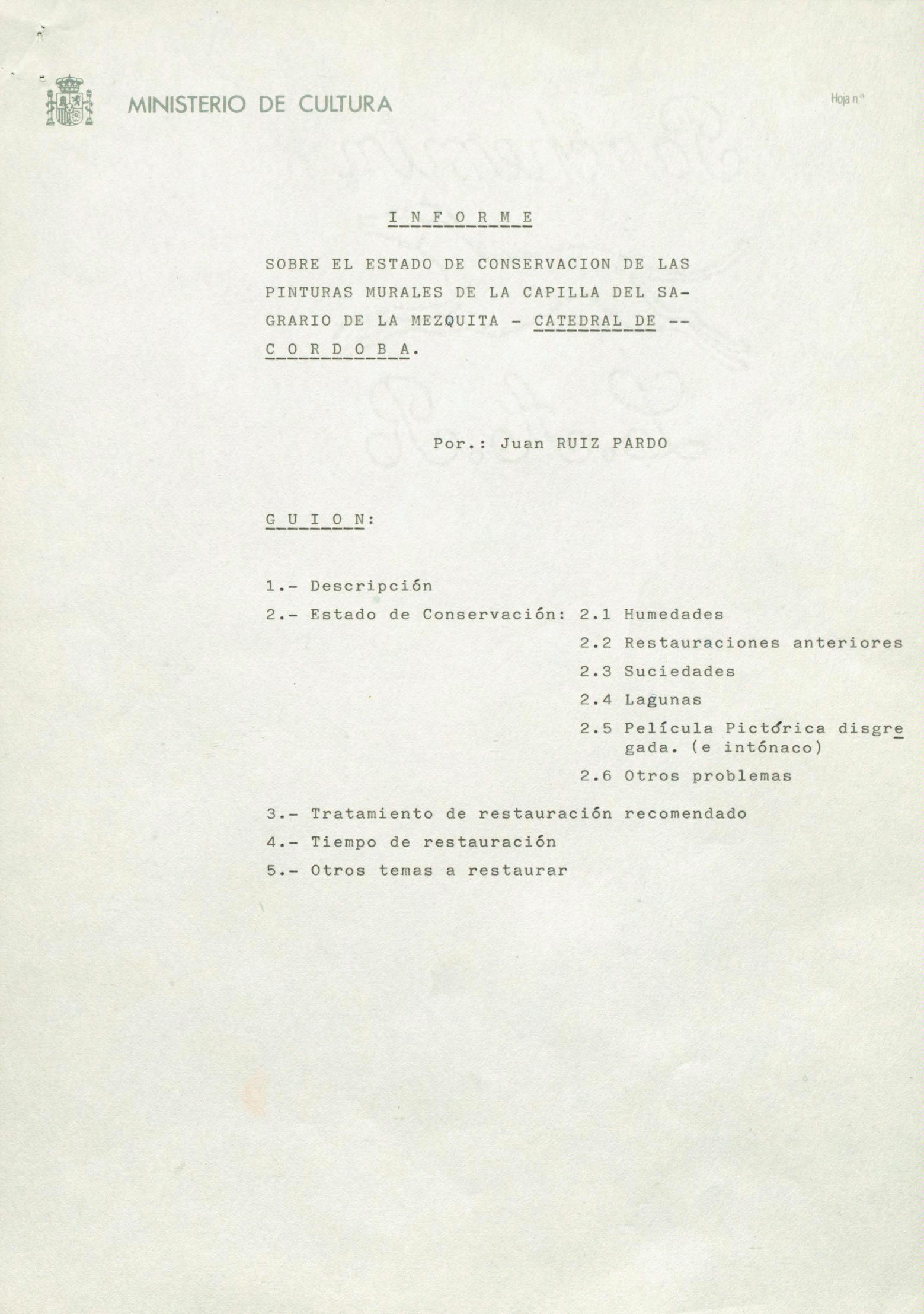 Informe de conservación de las pinturas murales de la capilla del sagrario de la Mezquita-catedral de Córdoba