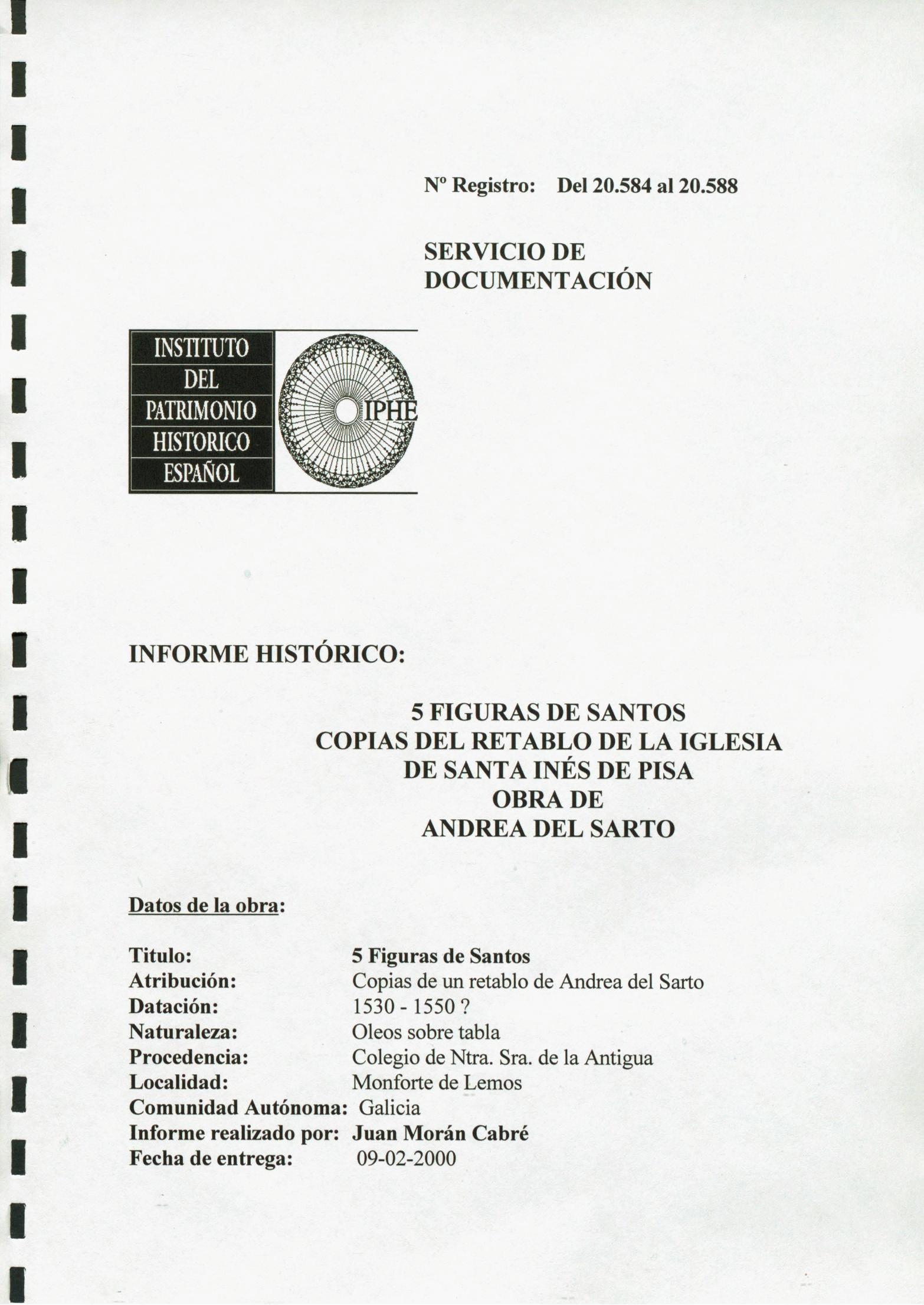 Restauración de cinco óleos sobre tabla de un políptico, copia de un retablo de Andrea del Sarto, procedente del Colegio de Nuestra Señora de la Antigua en Monforte de Lemos (Lugo)