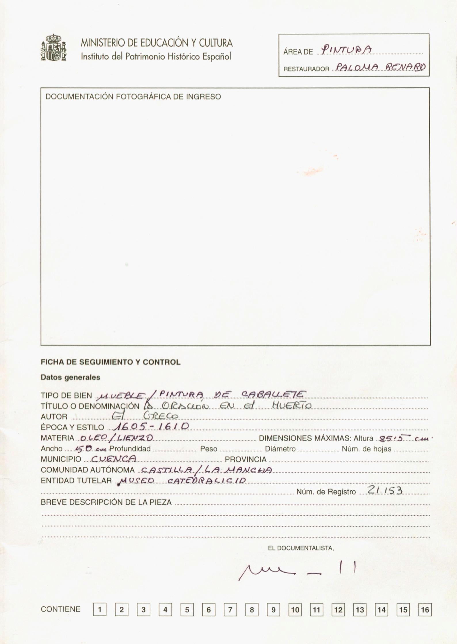 Restauración del lienzo "Oración en el Huerto", de El Greco, procedente del Museo Diocesano de la Catedral de Cuenca