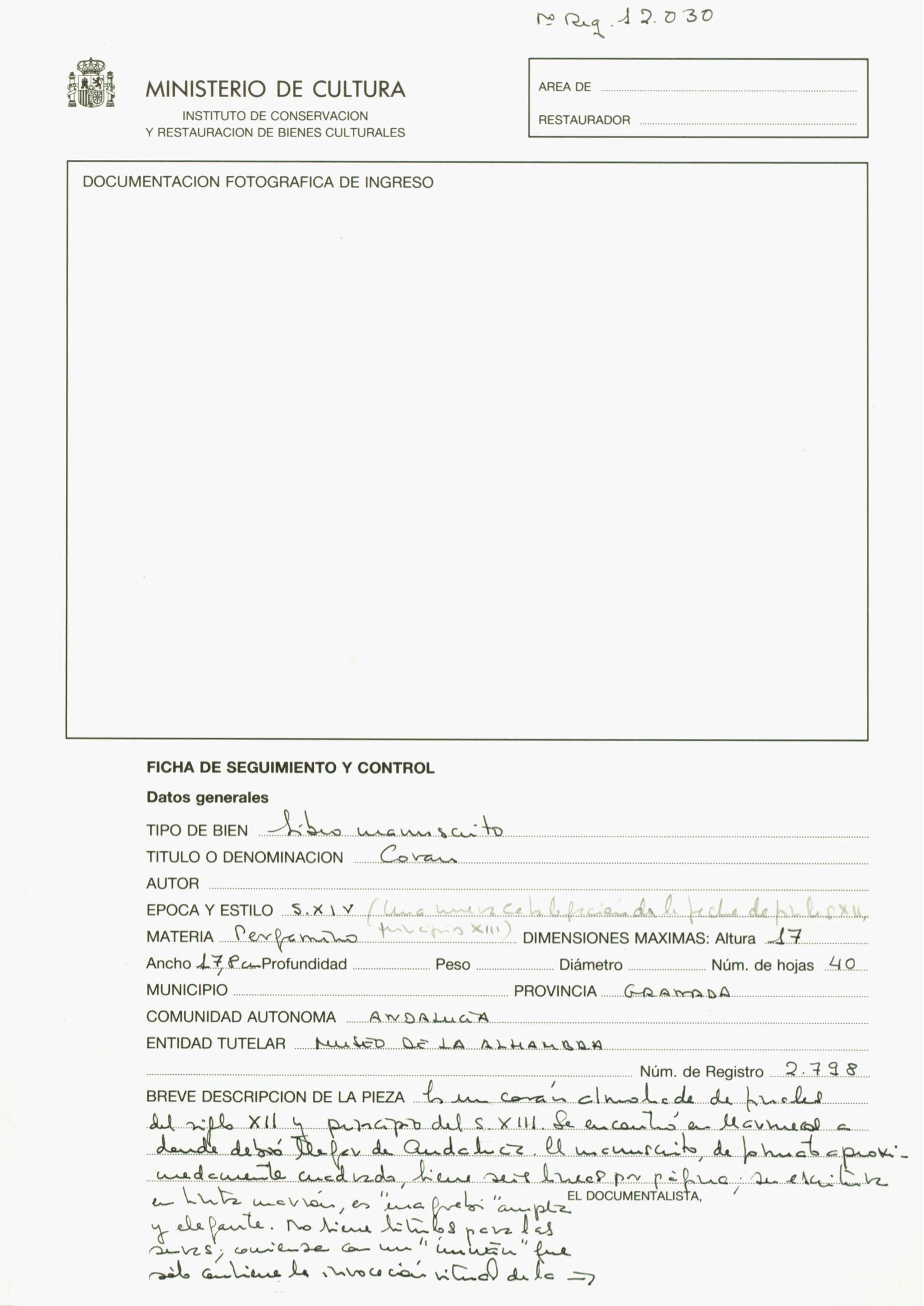 Restauración de dos libros del Corán, procedentes del Museo de la Alhambra (Granada)