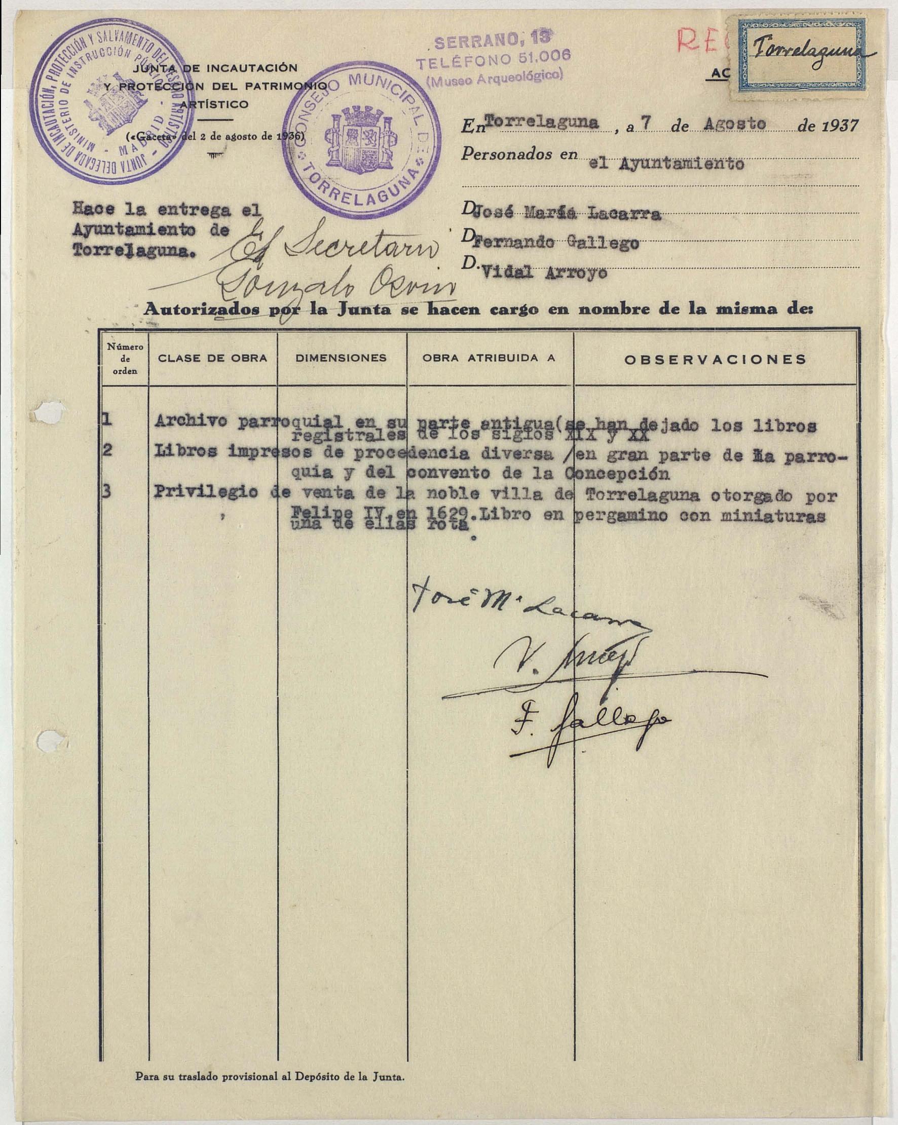 Acta de incautación del Ayuntamiento de Torrelaguna