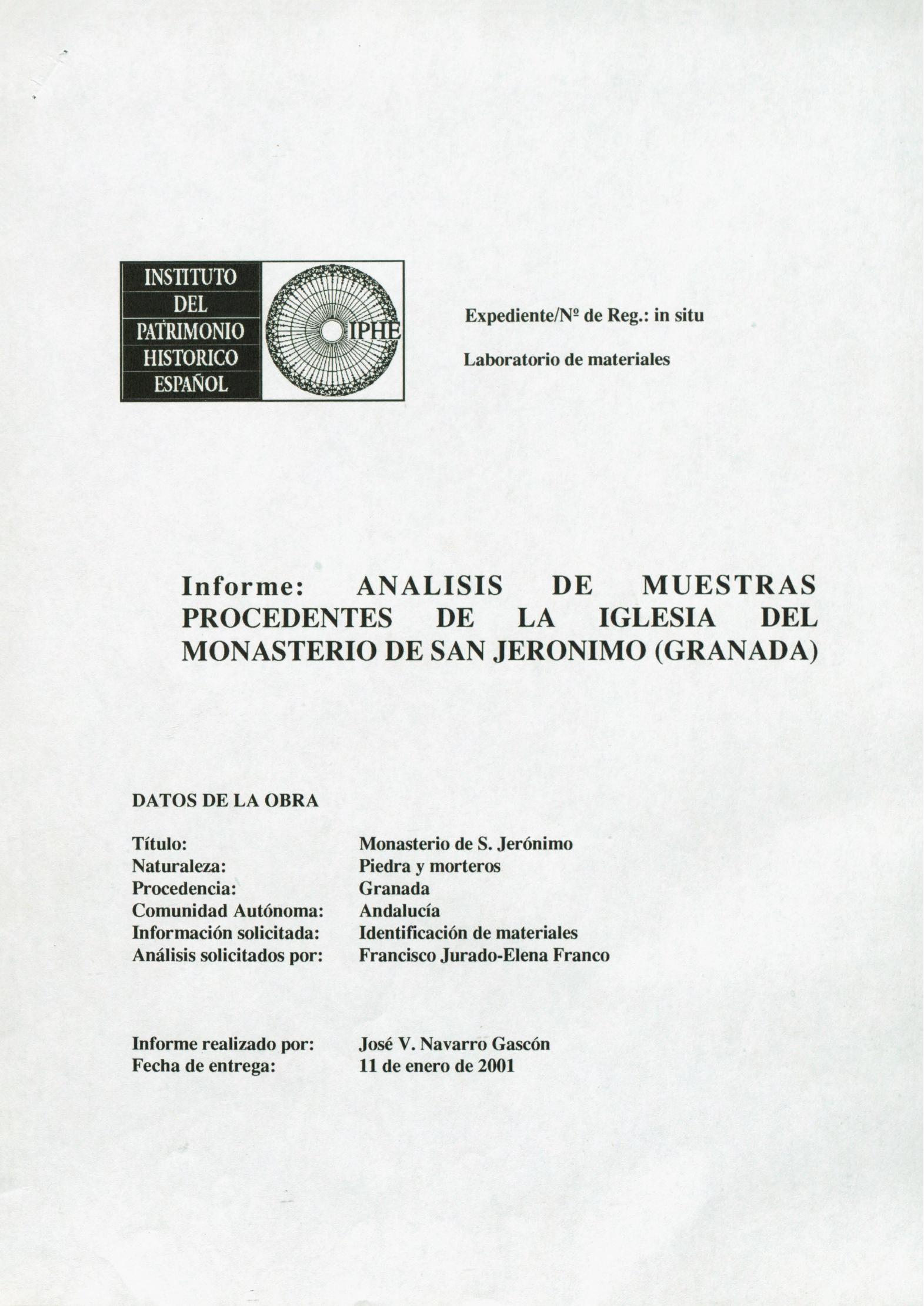 Informe de laboratorio sobre muestras procedentes de la Iglesia del Monasterio de San Jerónimo (Granada)