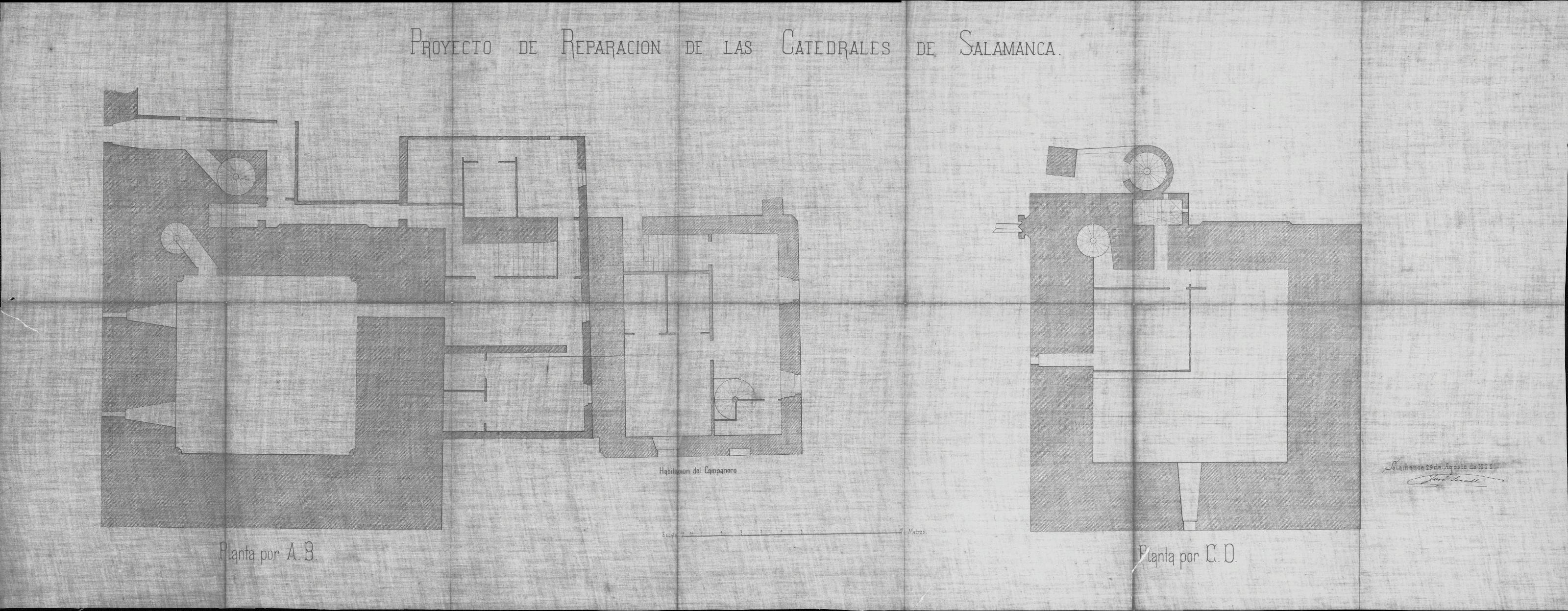 Catedral Vieja de Santa María. Salamanca.: Catedral Vieja. Planta por A-B y por C-D. Restauración.