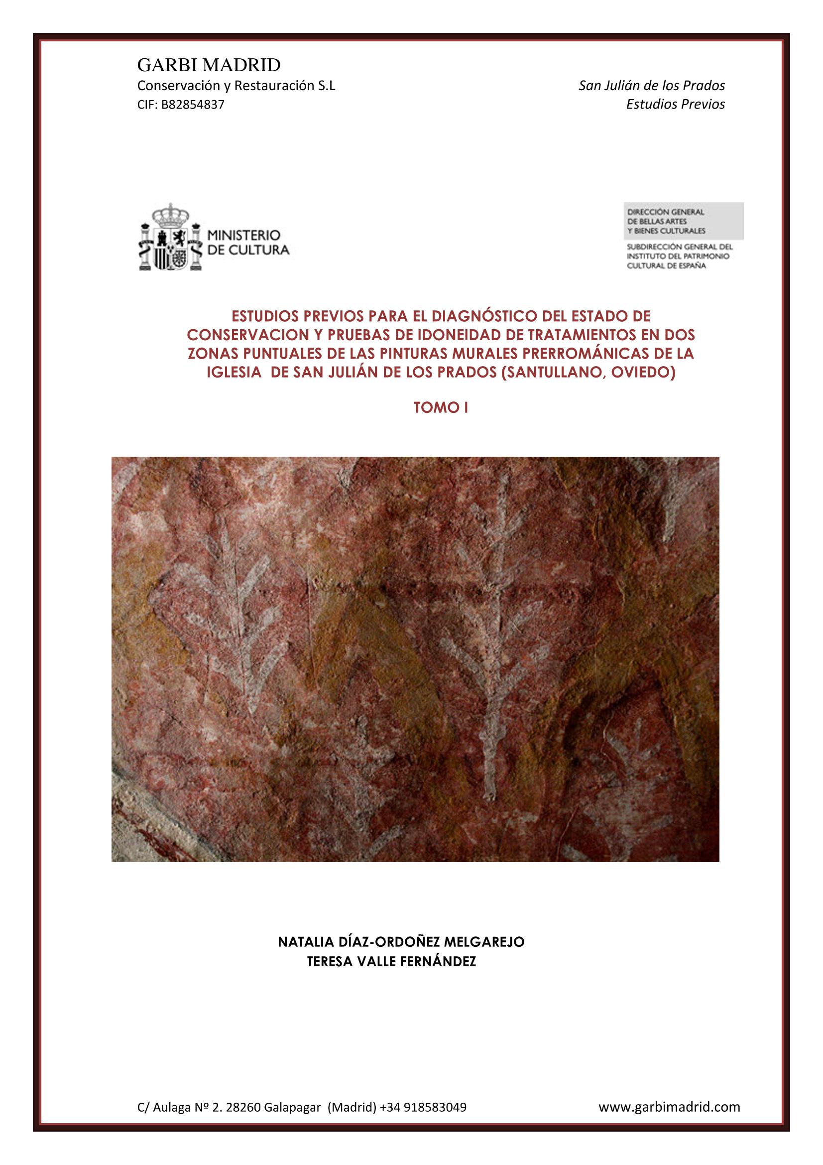 Estudios previos de restauración y pruebas de idoneidad de tratamientos en dos zonas puntuales de las pinturas murales prerrománicas de la Iglesia de San Julián de los Prados en Santullano (Oviedo)