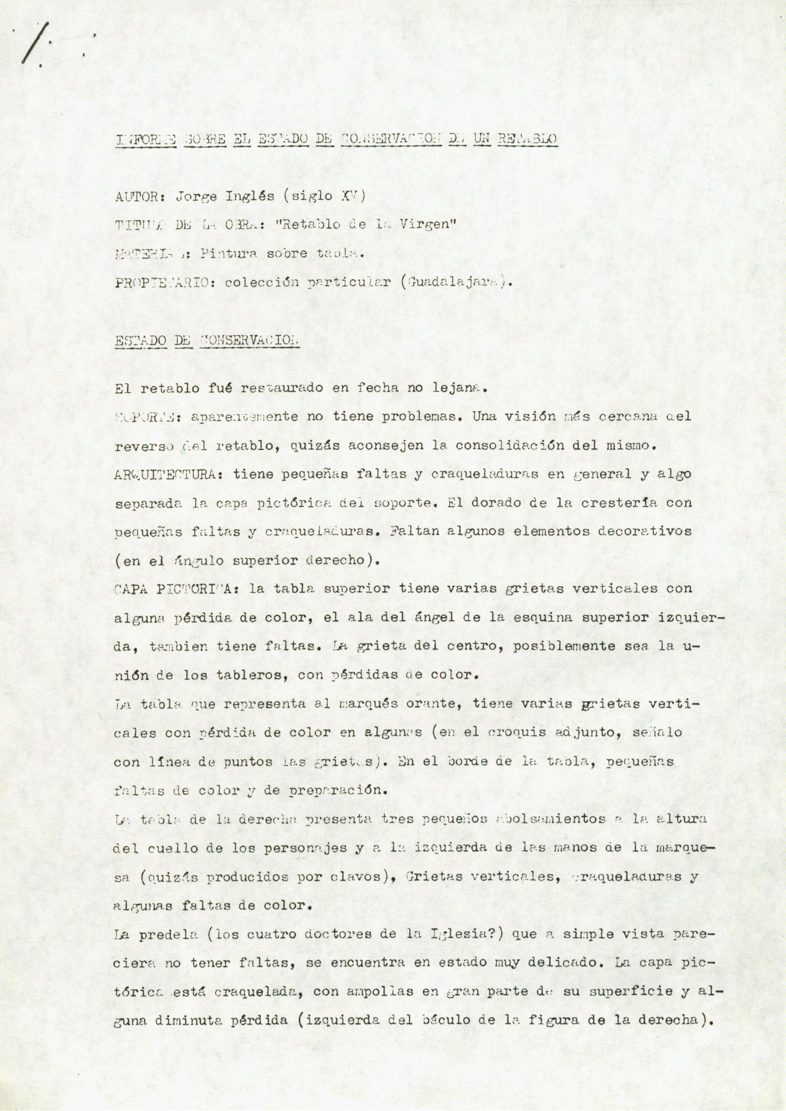 Informe de conservación sobre el "Retablo de la Virgen", de Jorge Inglés, procedente del Palacio del Infantado de Guadalajara