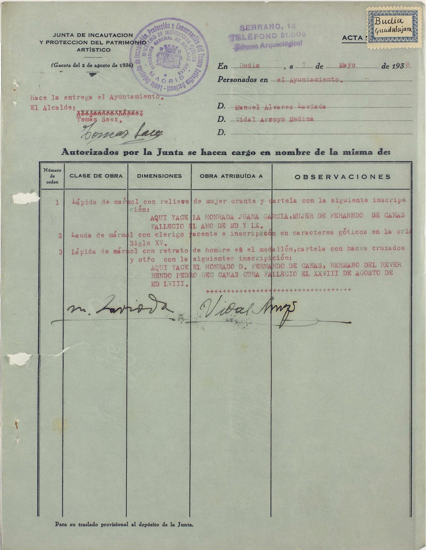 Actas de incautación de Budia (Guadalajara)