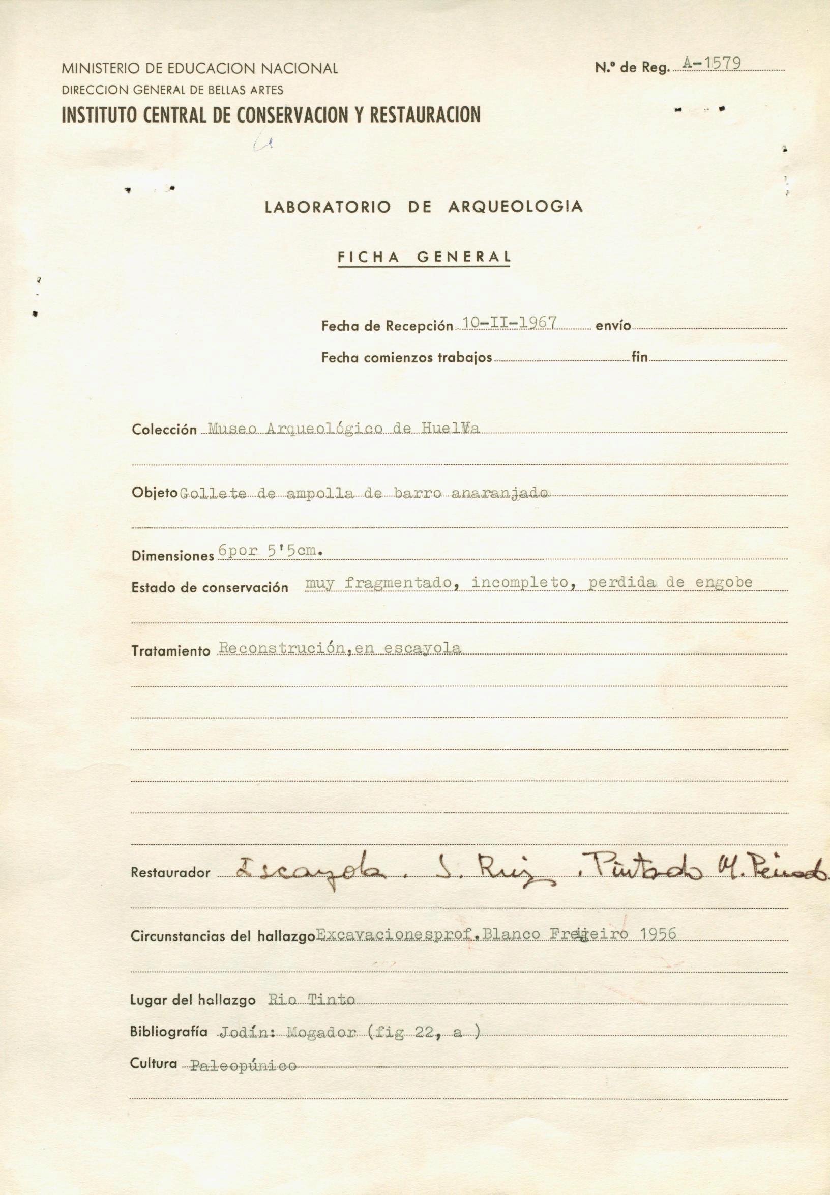 Restauración de piezas arqueológicas procedentes del Museo Arqueológico Provincial de Huelva