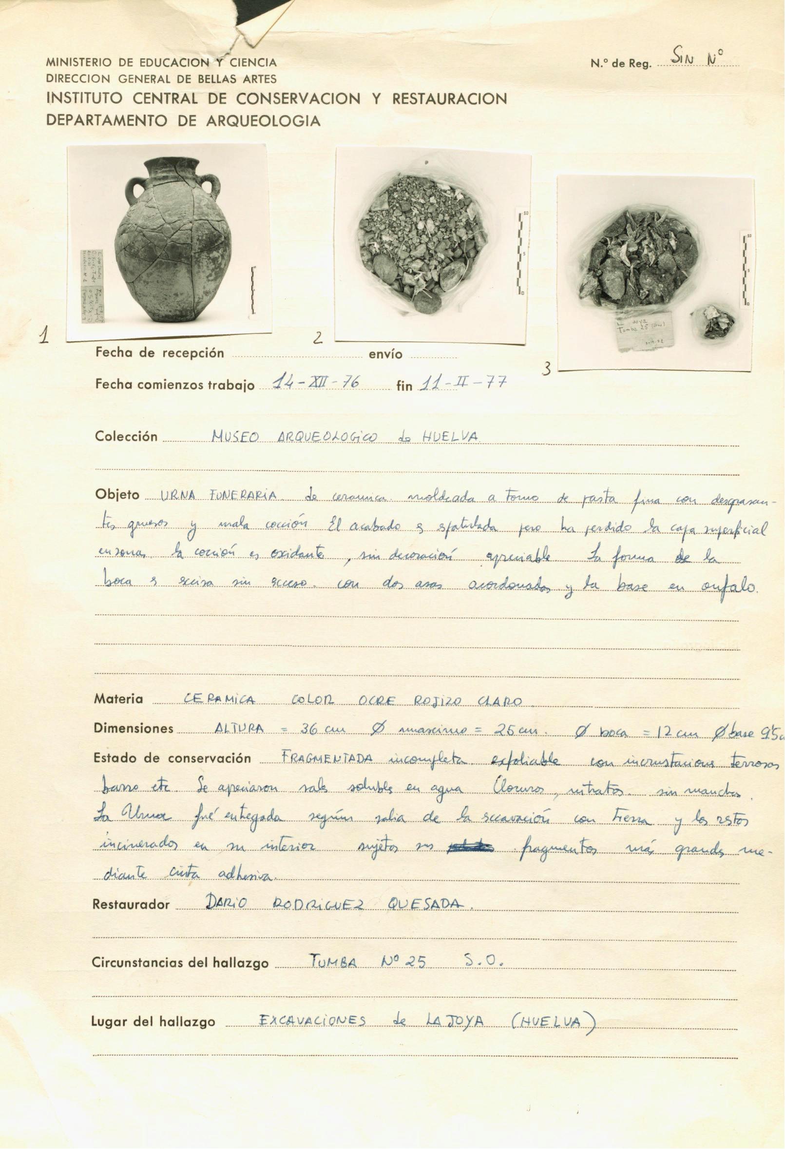 Restauración de una urna funeraria y un cuenco procedentes de la necrópolis de la Joya. Museo Arqueológico Provincial de Huelva