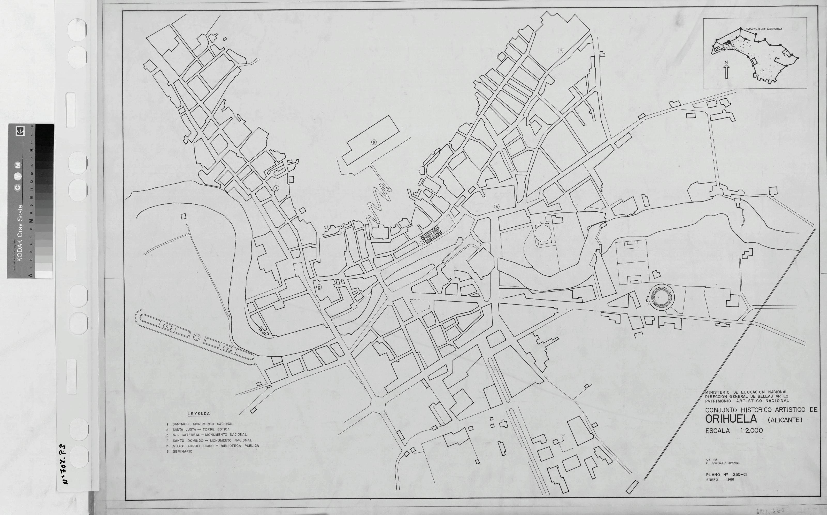 CONJUNTO HISTORICO ARTISTICO DE ORIHUELA: PLANO GENERAL DEL CONJUNTO ,.CON EMPLAZAMIENTO DE MONUMENTOS Y LEYENDA DE LOS MISMOS.