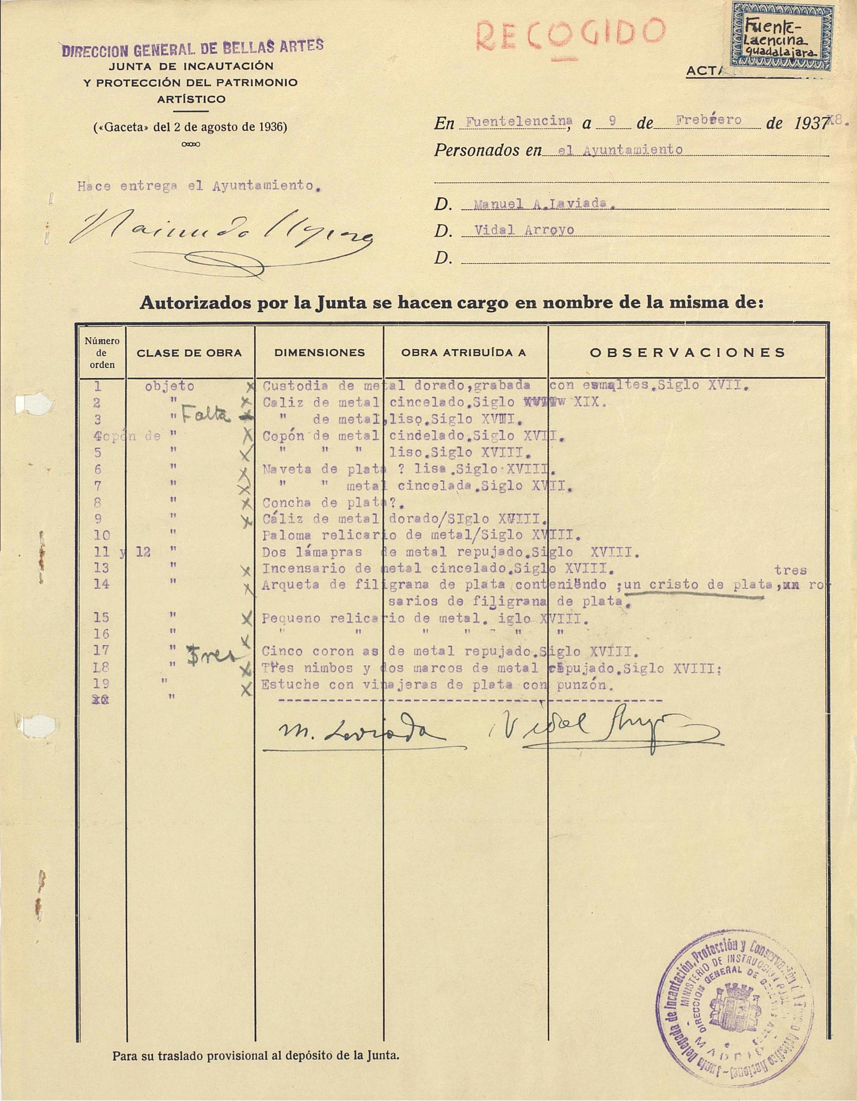 Actas de incautación de Fuentelaencina (Guadalajara)
