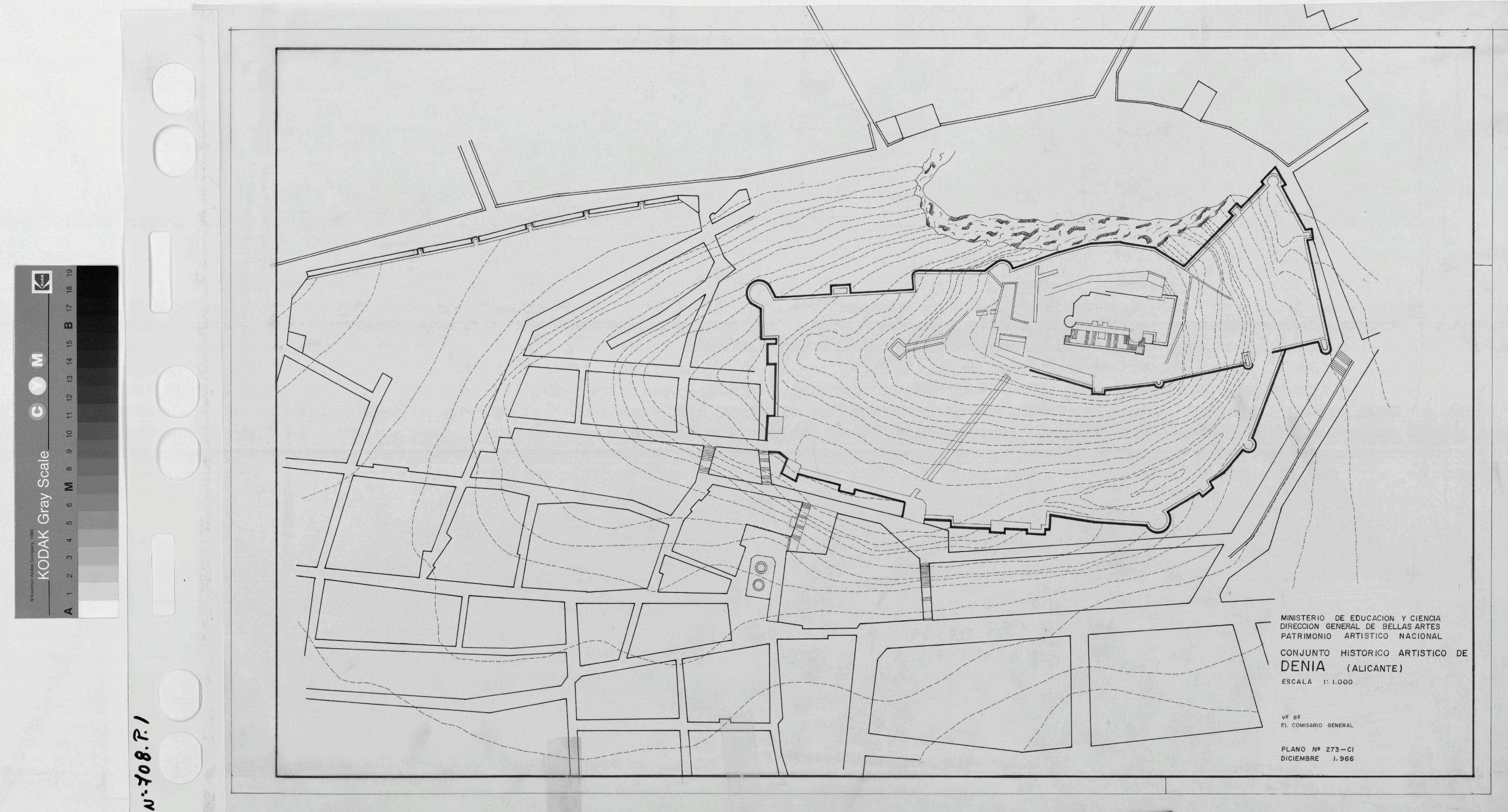 CONJUNTO HISTORICO ARTISTICO DE DENIA: PLANO GENERAL DEL CONJUNTO , MARCA LINEAS DE NIVEL, SIN ACOTAR.