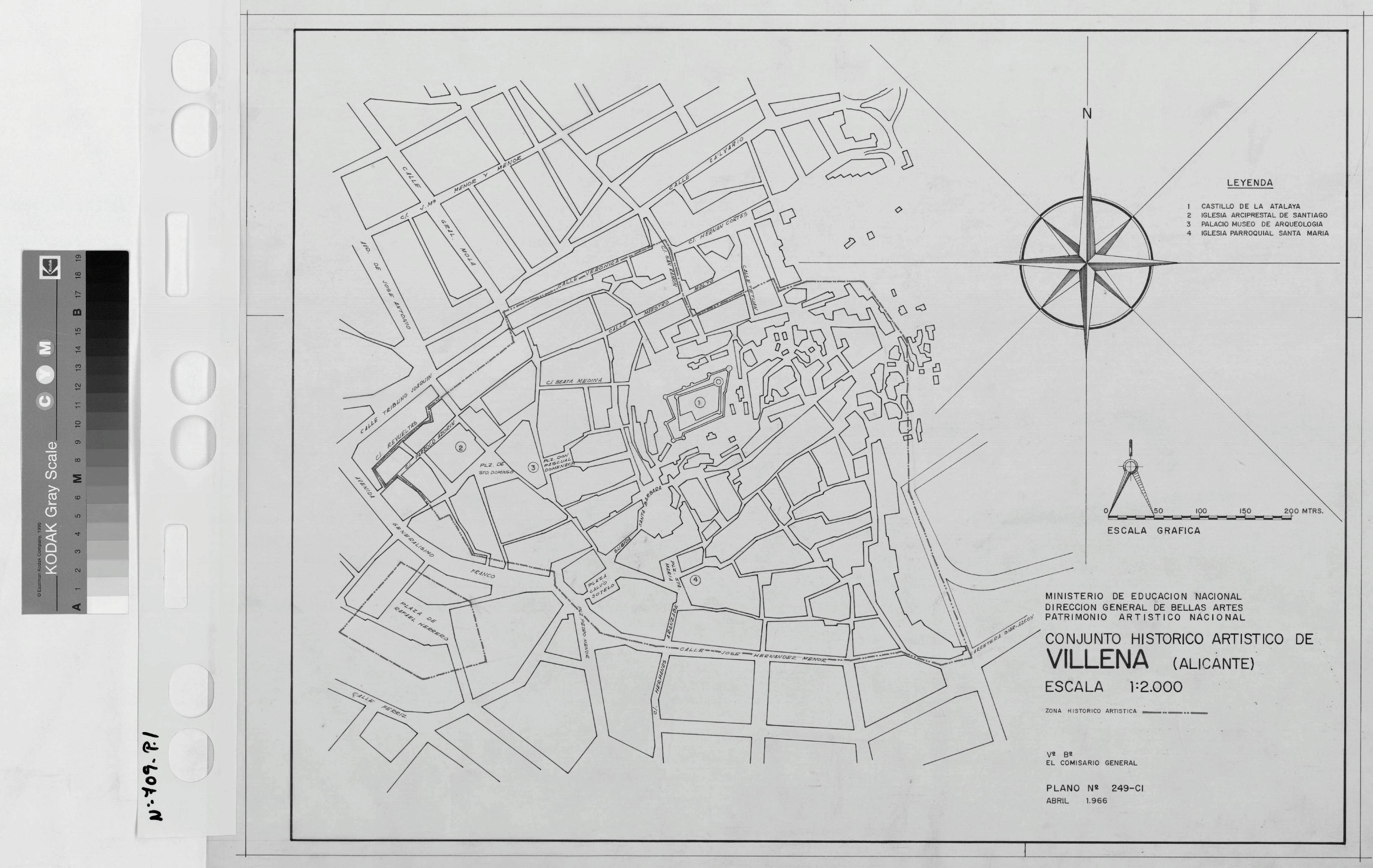 CONJUNTO HISTORICO ARTISTICO DE VILLENA: PLANO GENERAL DEL CONJUNTO , EMPLAZAMIENTO DE MONUMENTOS Y LEYENDA DE LOS MISMOS,