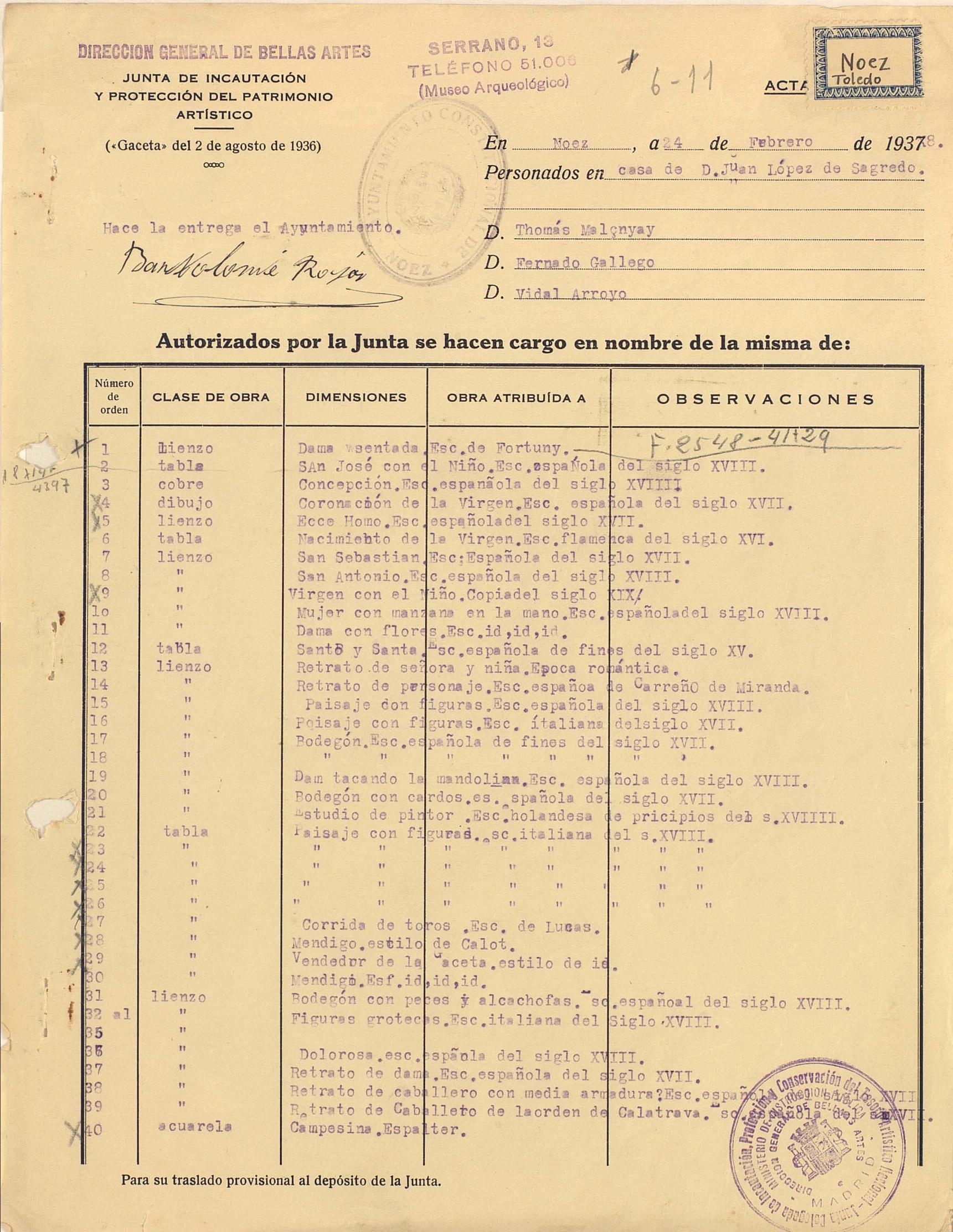 Acta de incautación de Noez, Toledo