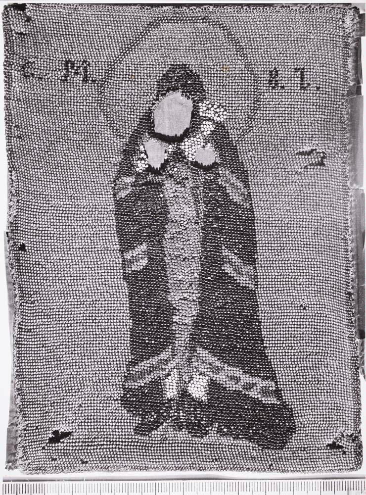 Restauración de la cubierta textil con cuentas de una tabla pintada de "San Mitrofan", de la escuela de Novgorod, procedente del Museo de Bellas Artes de A Coruña