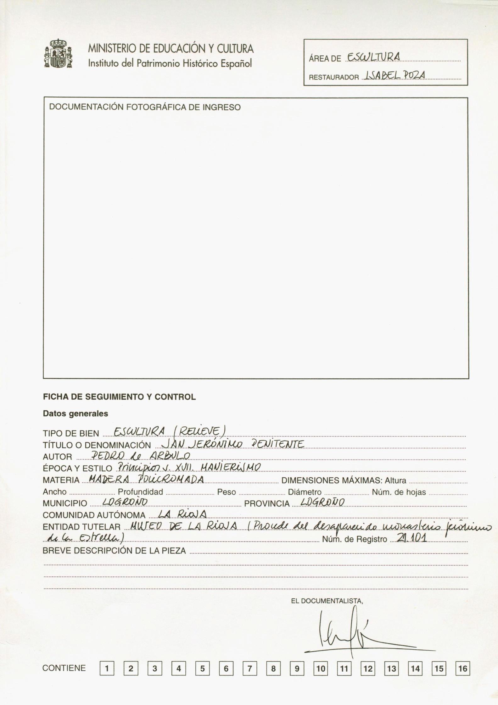 Restauración de la talla "San Jerónimo Penitente", de Pedro de Arbulo, procedente del Museo Arqueológico Provincial de Logroño (La Rioja)