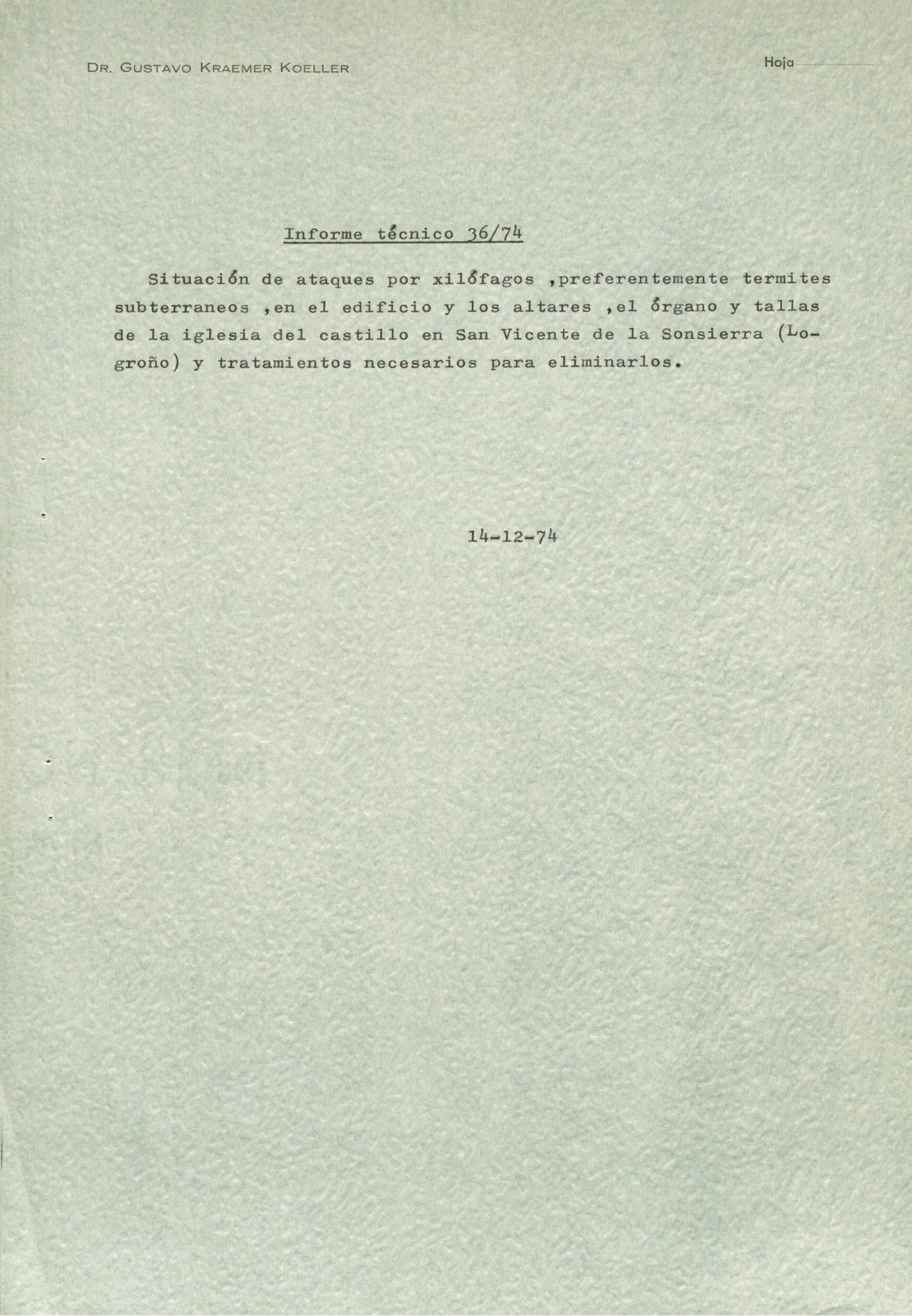 Informe de conservación sobre el ataque por xilófagos en el piso, altares, órgano y tallas procedentes de la Iglesia de San Vicente de la Sonsierra (La Rioja)