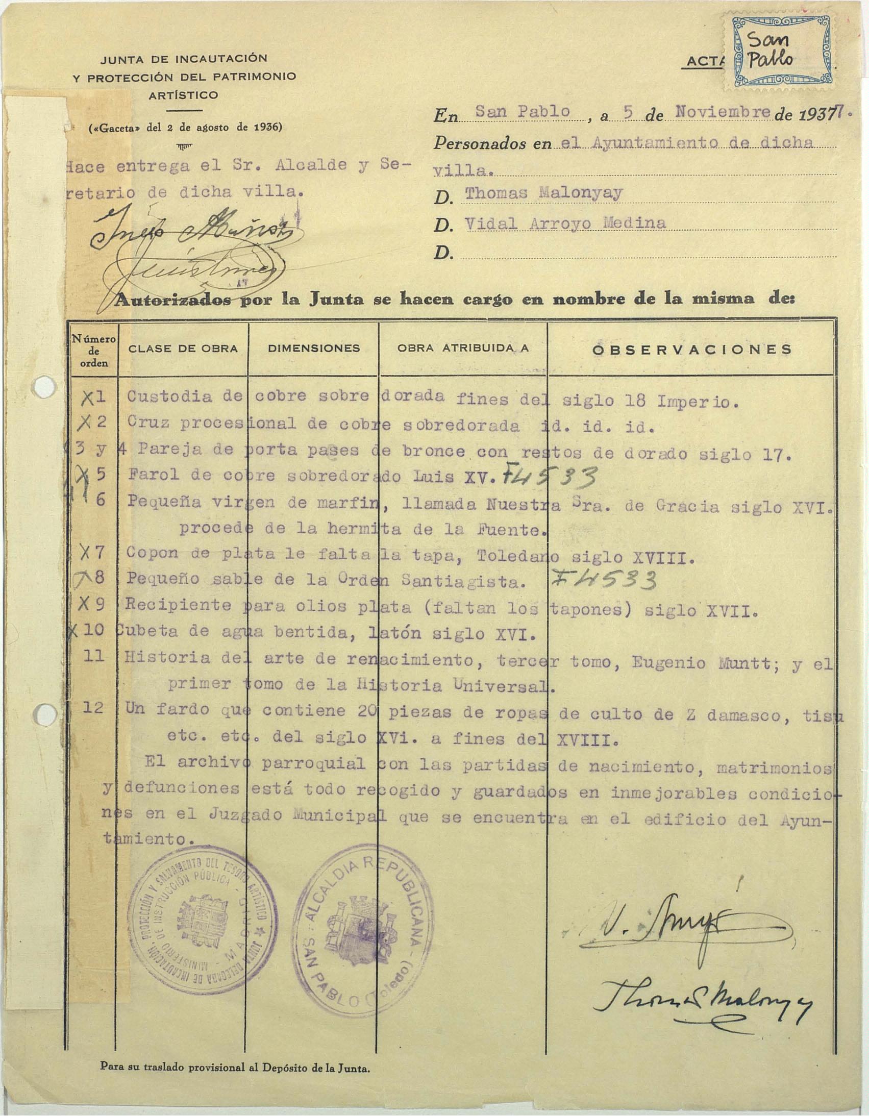 Acta de incautación de San Pablo de los Montes (Toledo)