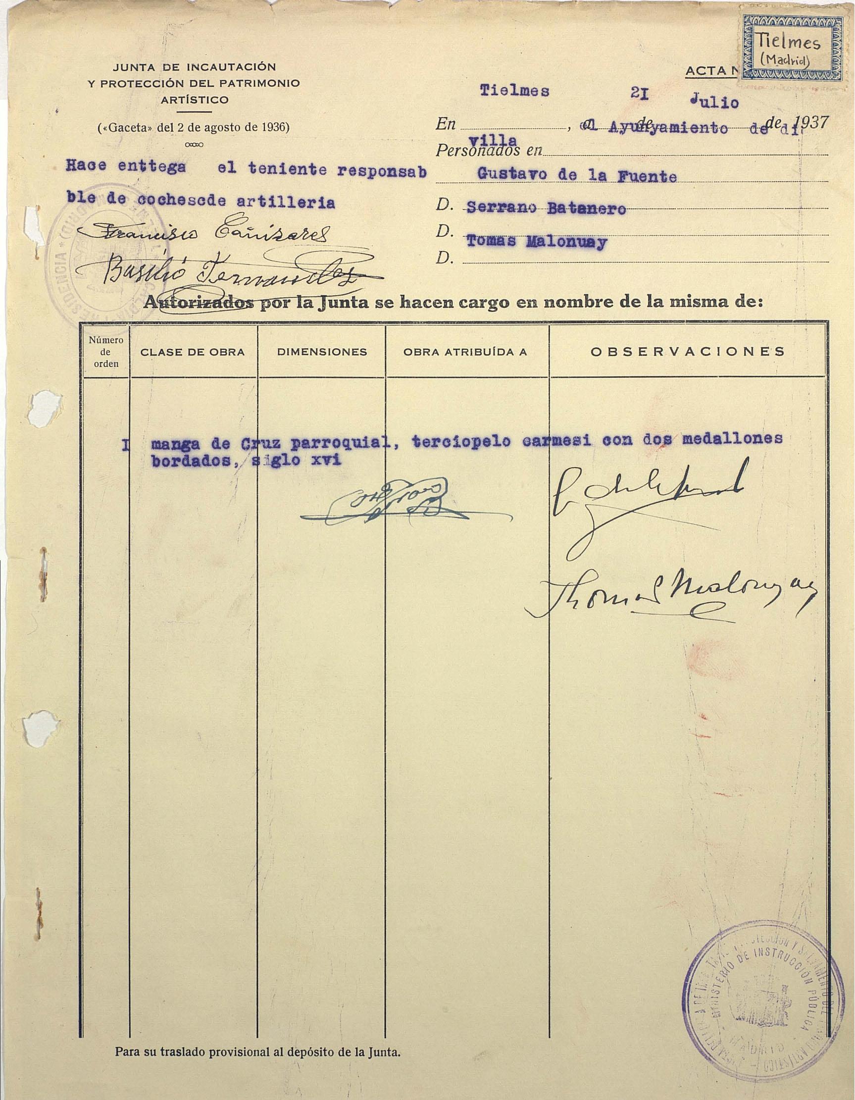 Acta de incautación de Tielmes (Madrid)