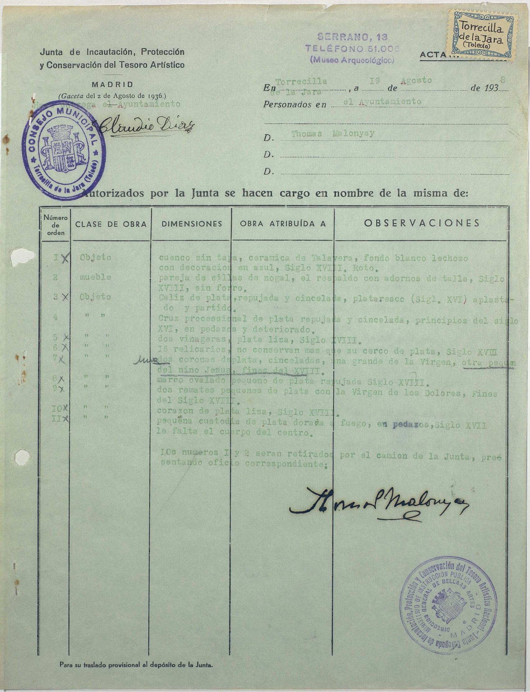 Acta de incautación de Torrecilla de la Jara (Toledo)