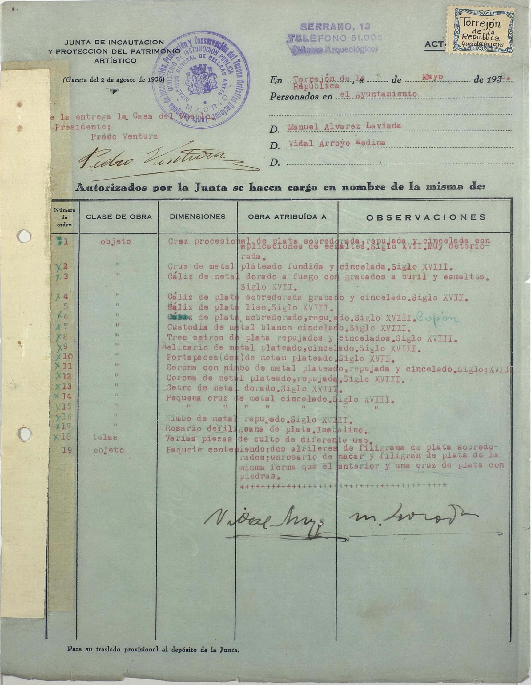 Acta de incautación de Torrejón de la República (Guadalajara)