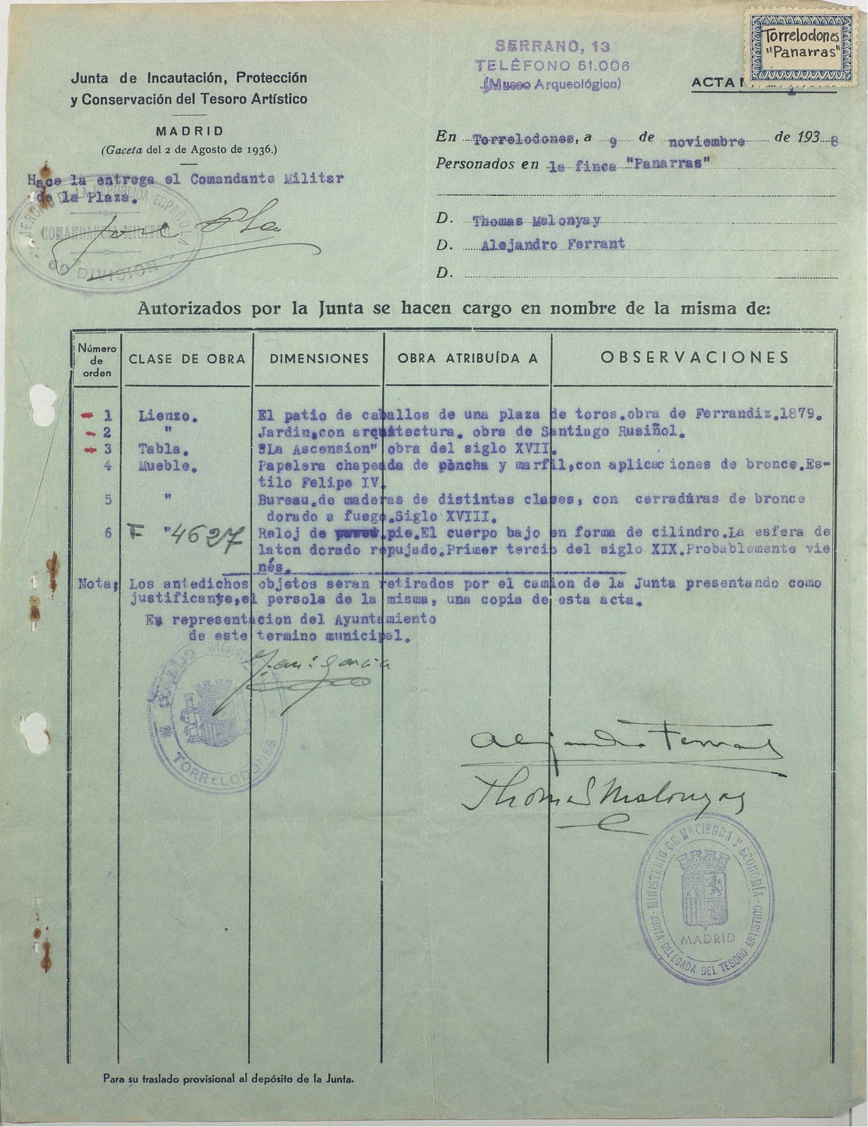 Acta de incautación de Torrelodones, Madrid (1938, noviembre 9 -11) y Acta de incautación de Torrelodones, Finca Panarras (1938, noviembre 9) (Madrid)