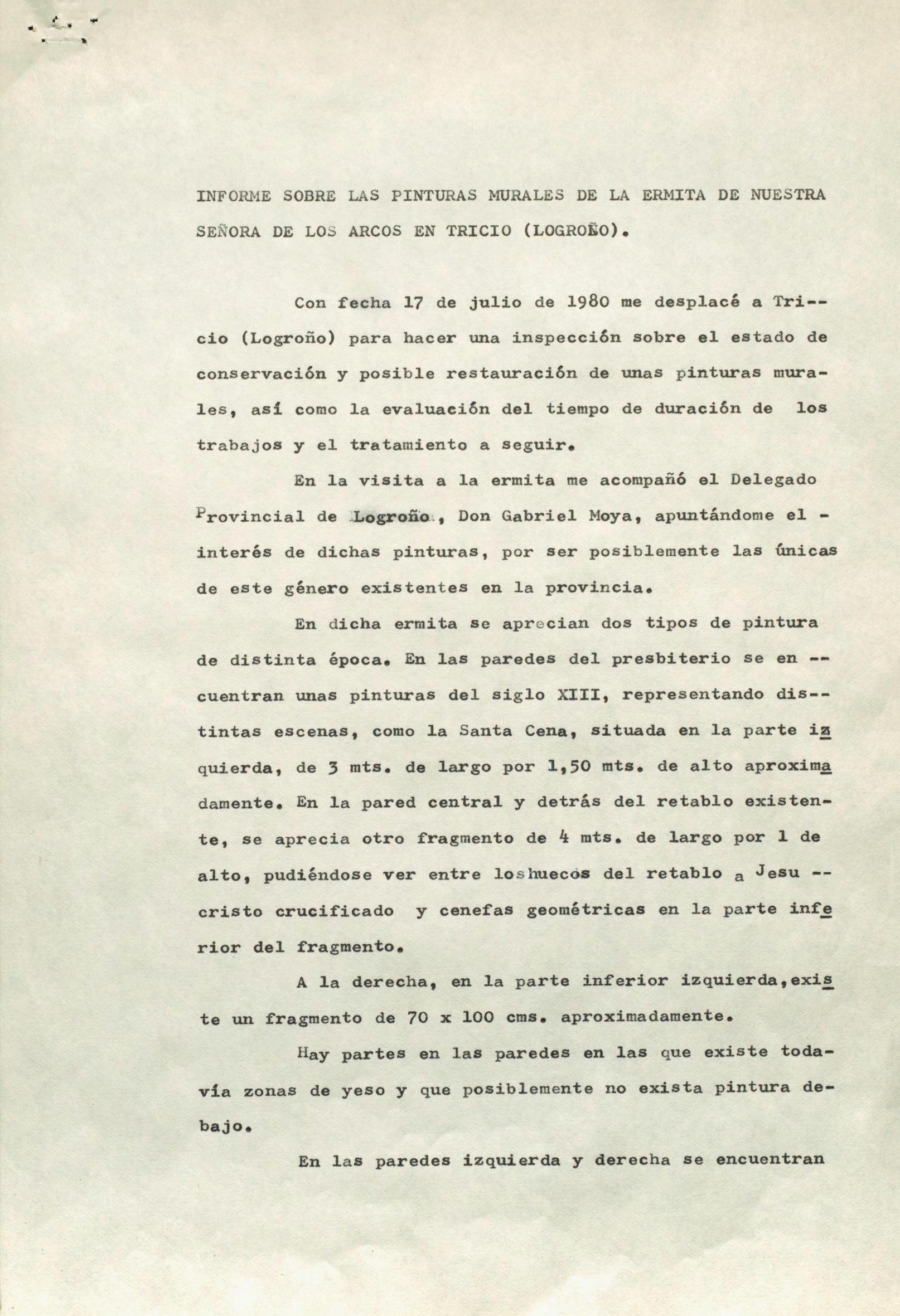 Informe de conservación de las pinturas murales de la Ermita de los Arcos en Tricio (La Rioja)