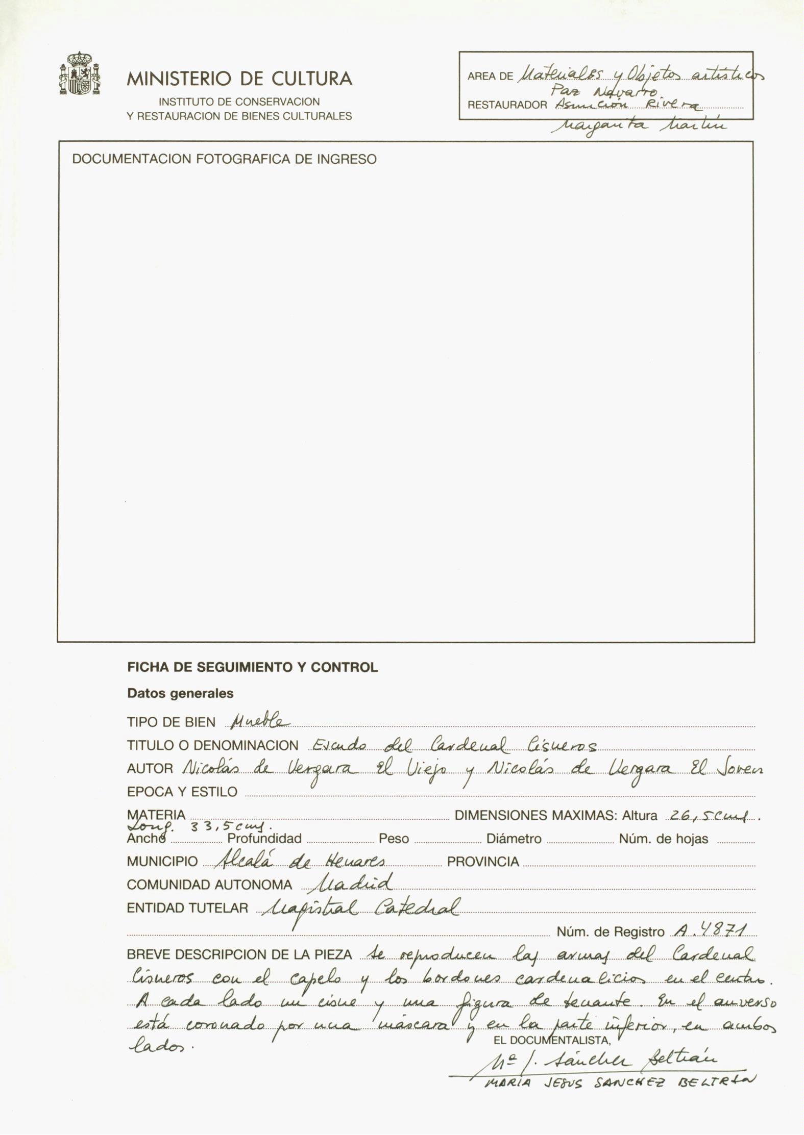 Restauración del escudo del cardenal Cisneros, de Nicolás de Vergara El Viejo, procedente de la Catedral Magistral de Alcalá de Henares (Madrid)