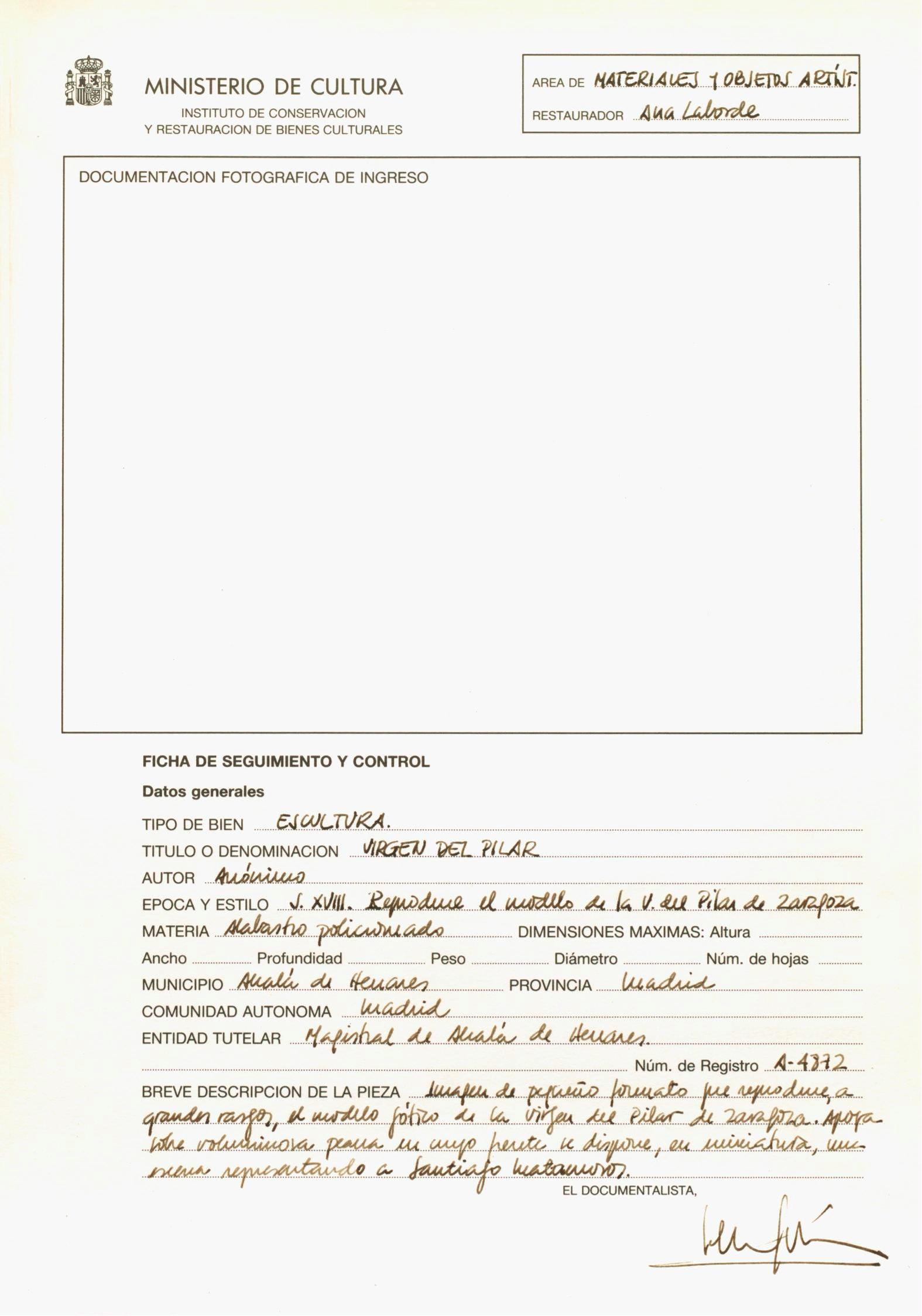 Restauración de una talla en alabastro de la Virgen del Pilar procedente de la Catedral Magistral de Alcalá de Henares (Madrid)