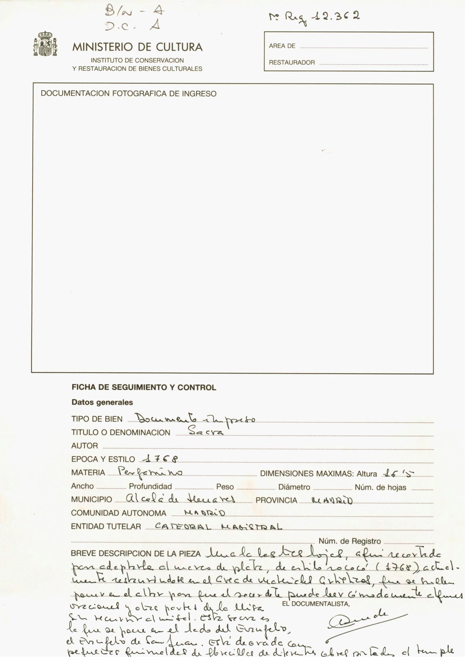 Restauración de tres sacras impresas sobre pergamino procedentes de la Catedral Magistral de Alcalá de Henares (Madrid)
