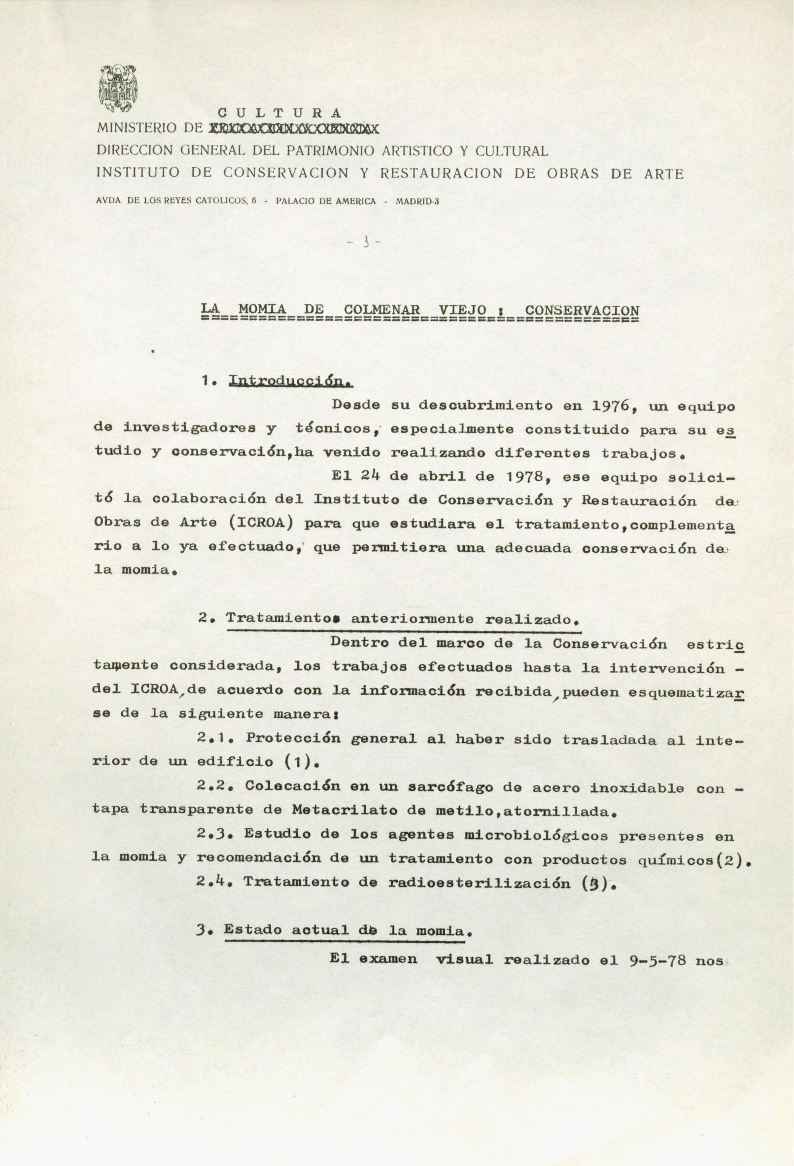 Informe de conservación de una momia del siglo XVI procedente de la Iglesia parroquial de Colmenar Viejo (Madrid)