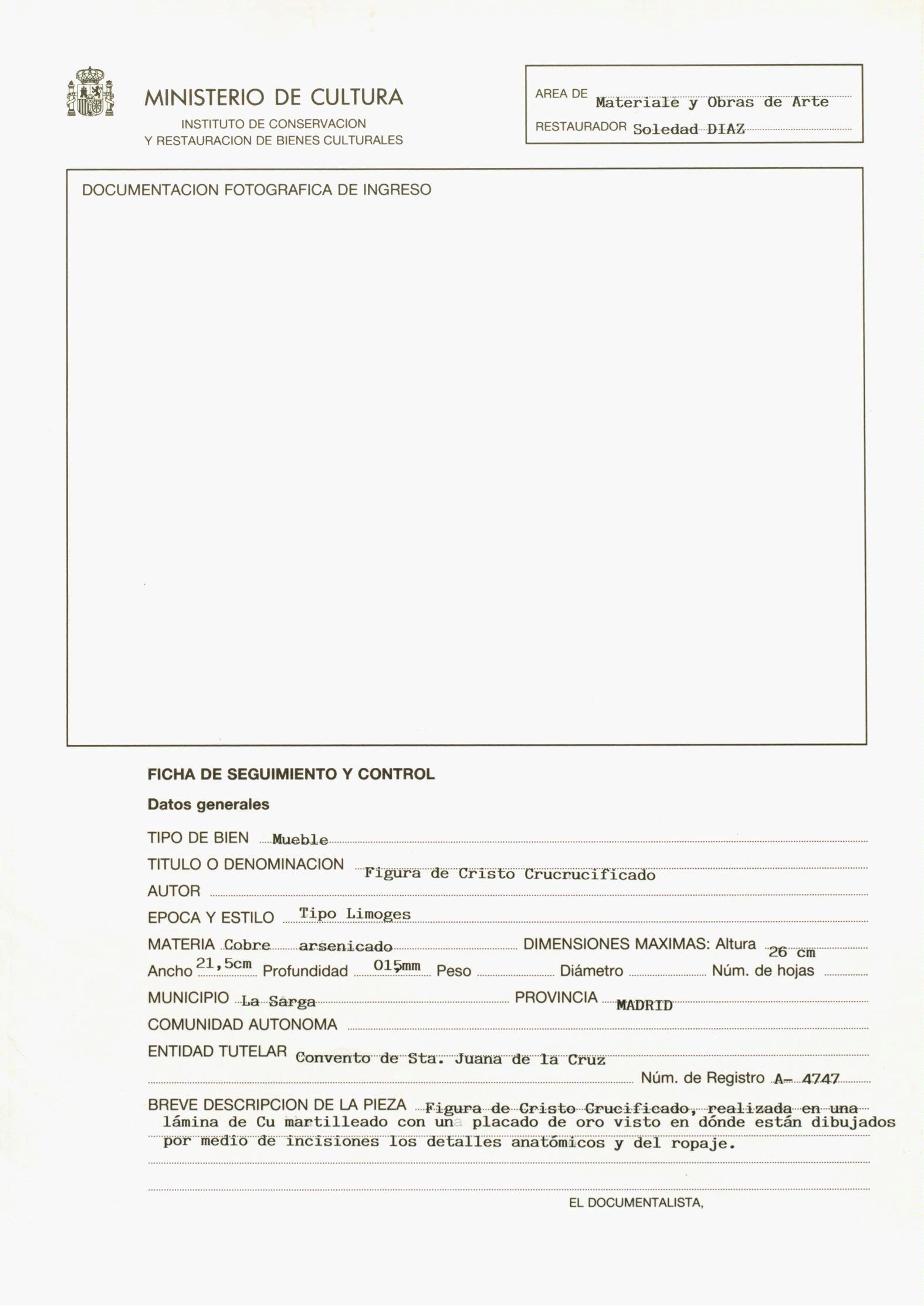 Restauración un Cristo de bronce, una medalla y cuentas de un rosario procedentes del Convento de Santa Juana de Cubas de la Sagra (Madrid)