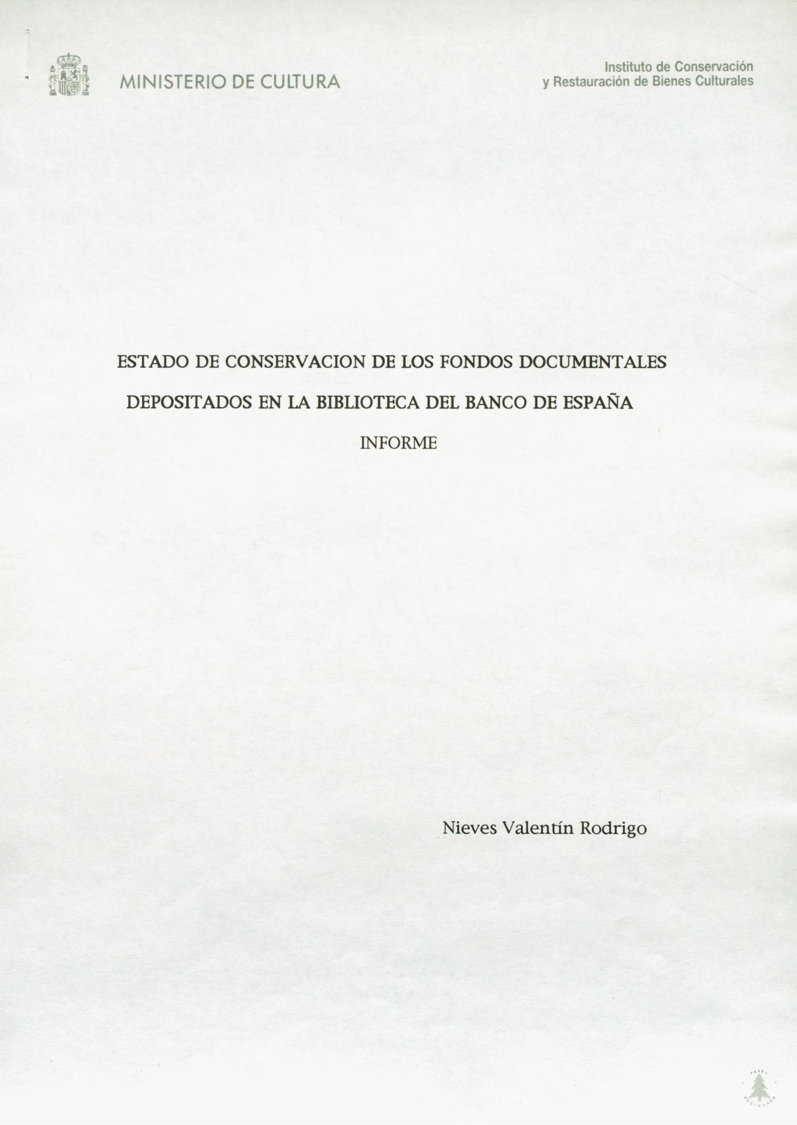 Informe de conservación de los fondos documentales depositados en la Biblioteca del Banco de España (Madrid)
