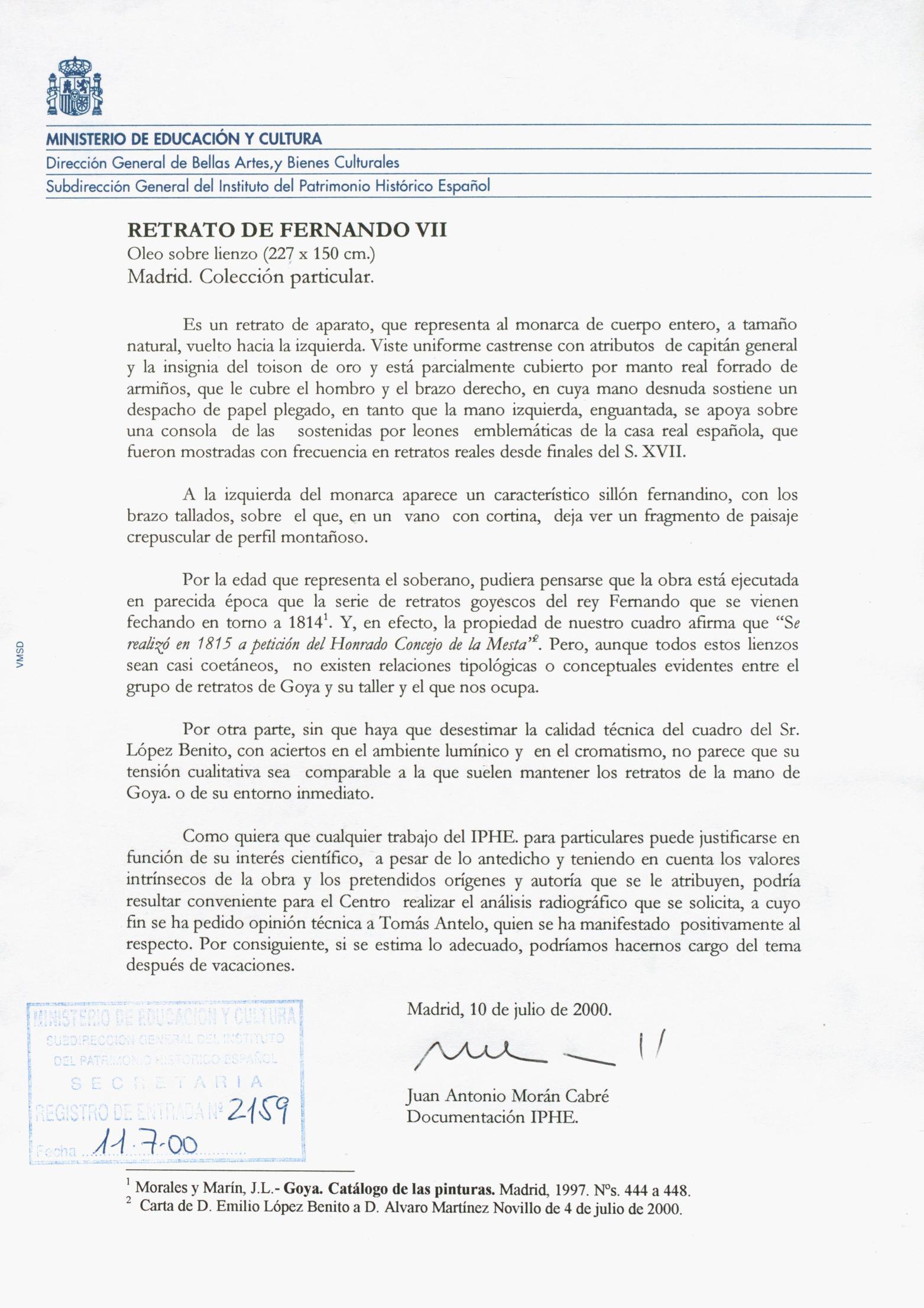 Informe sobre el análisis radiográfico de una pintura de "Fernando VII", de posible atribución al entorno de Goya, procedente de la colección particular de Emilio López Benito (Madrid)
