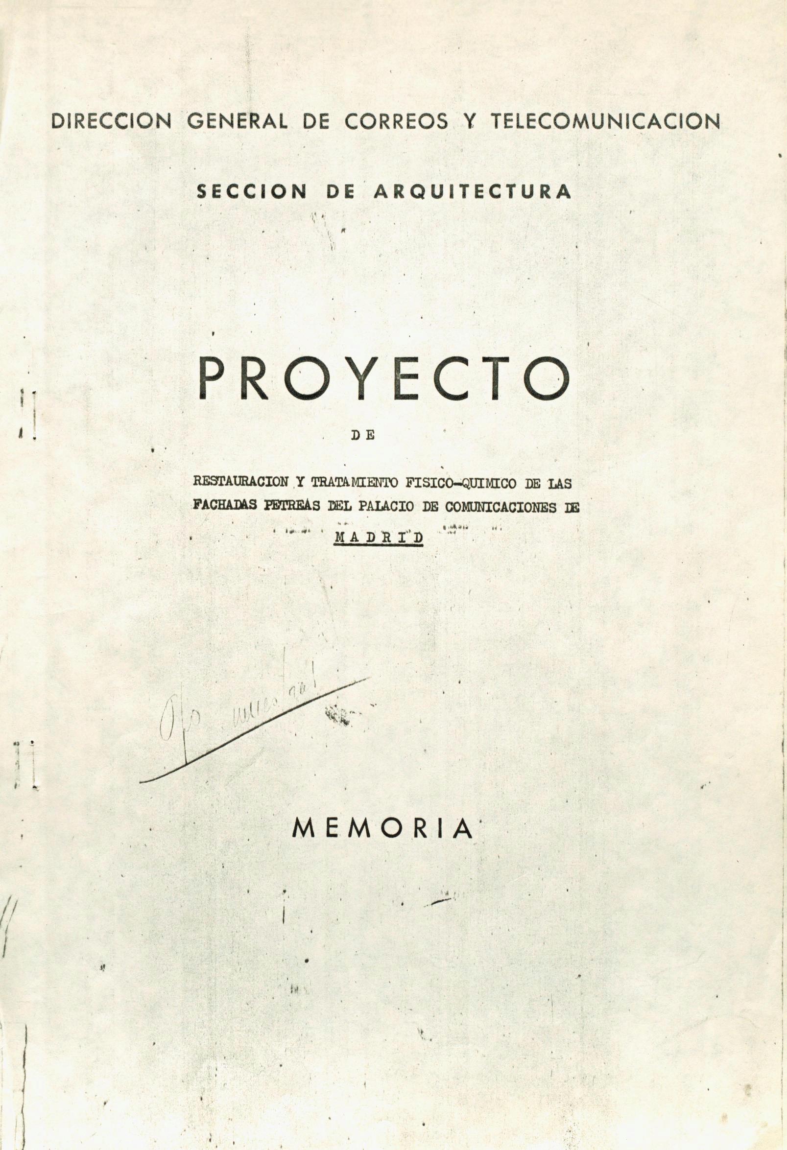 Informe de conservación y de tratamiento físico-químico de las fachadas pétreas del Palacio de Comunicaciones de Madrid