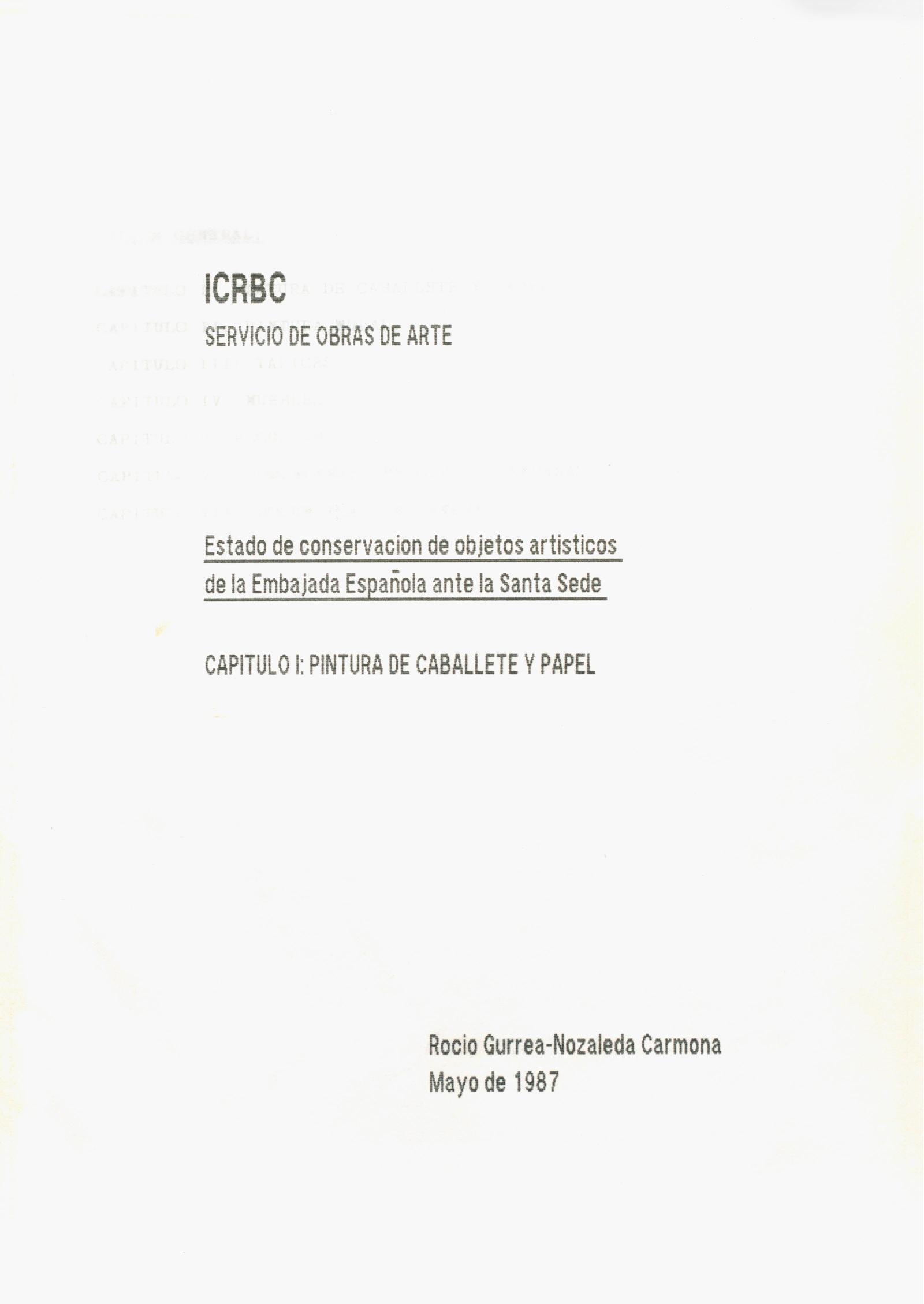 Informe de conservación de objetos artísticos de la Embajada Española ante la Santa Sede, en el Palacio de España (Roma)
