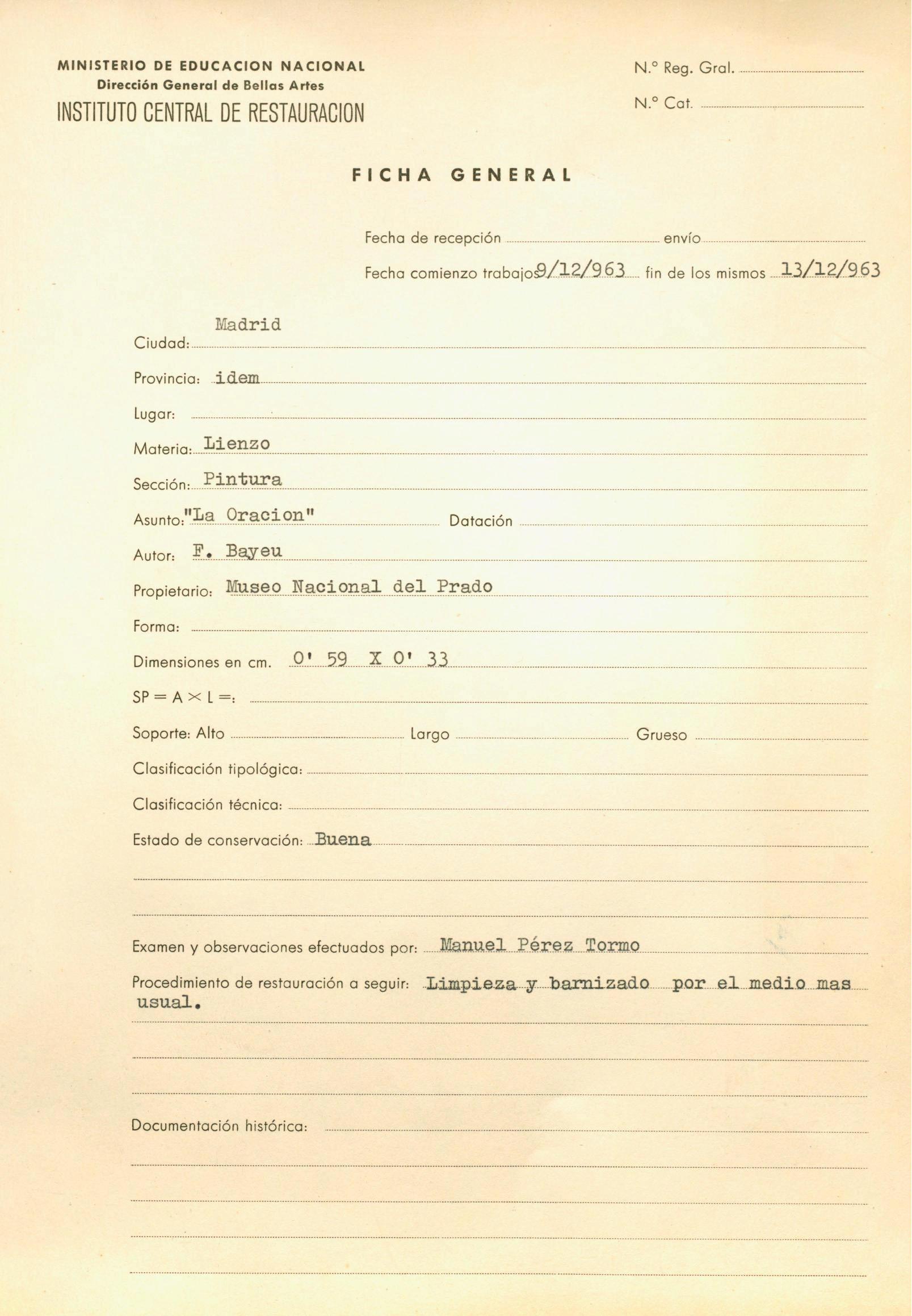 Informes de conservación de lienzos y tablas de Bayeu, Goya, Gallegos o El Greco, procedentes del Museo Nacional del Prado (Madrid)