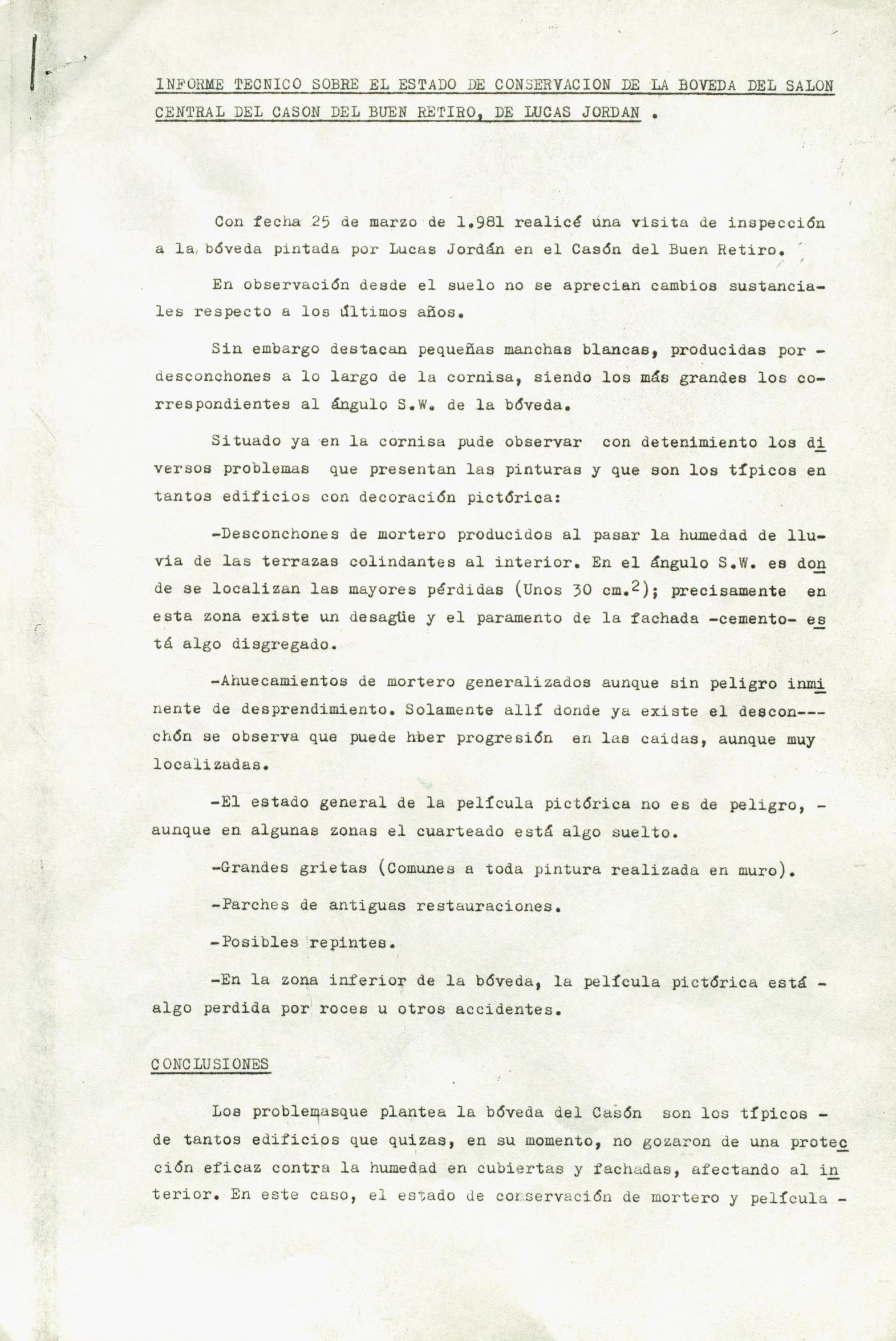 Informe de conservación de las pinturas murales de Lucas Jordán, pertenecientes a la bóveda del Salón General del Buen Retiro. Museo Nacional del Prado (Madrid)