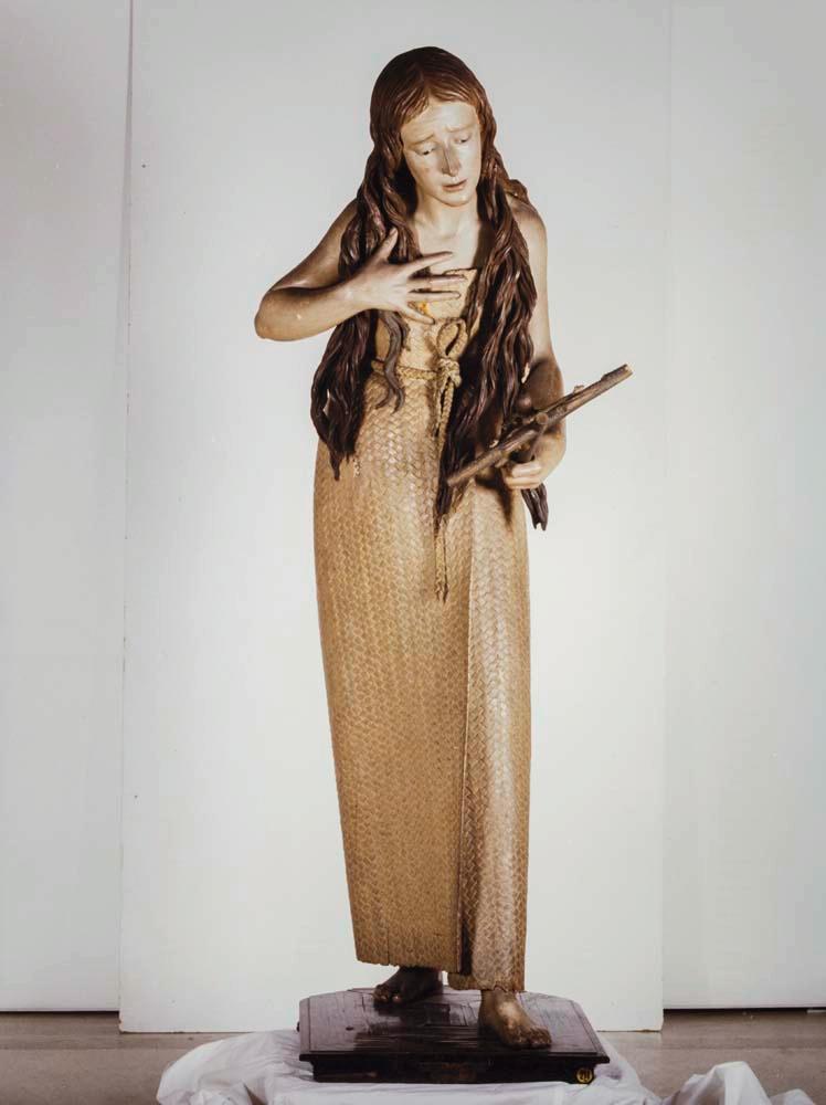 Restauración de la "Magdalena penitente", escultura en madera policromada de Pedro de Mena, procedente del Museo Nacional del Prado (Madrid)